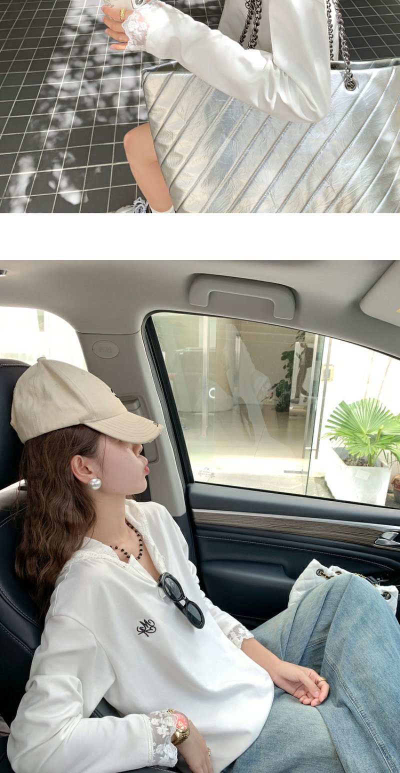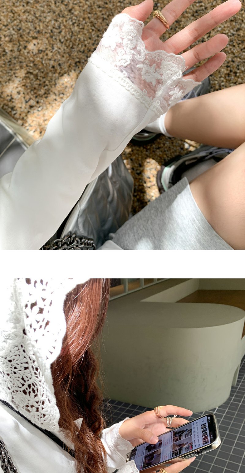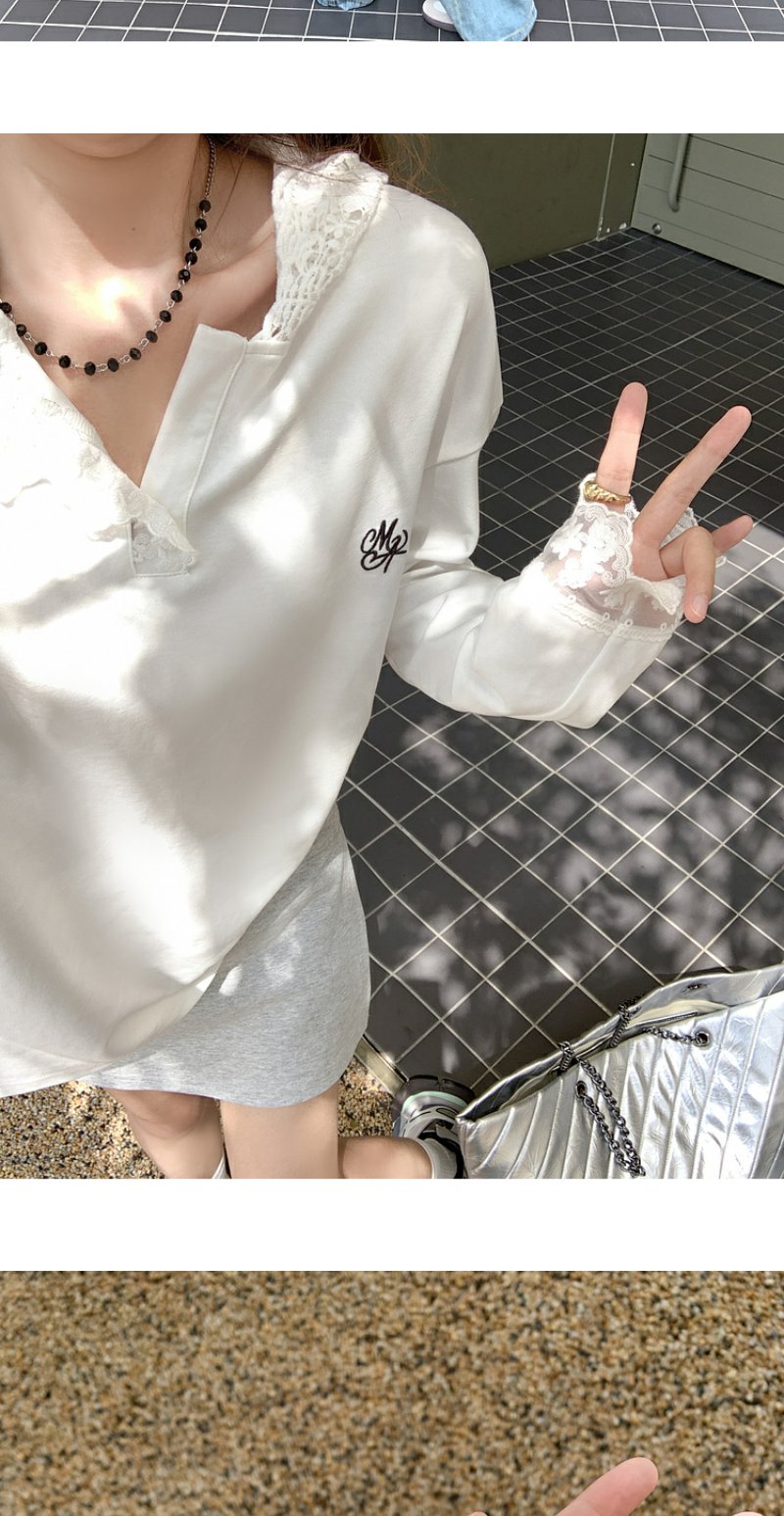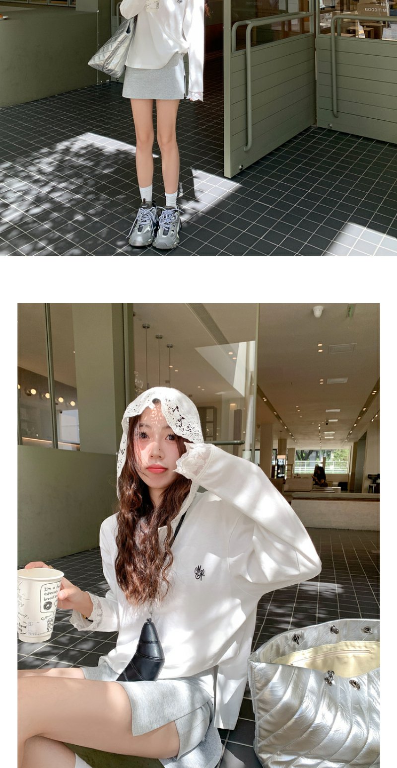<曾小咸推荐>韩版白色蕾丝边长袖连帽T恤