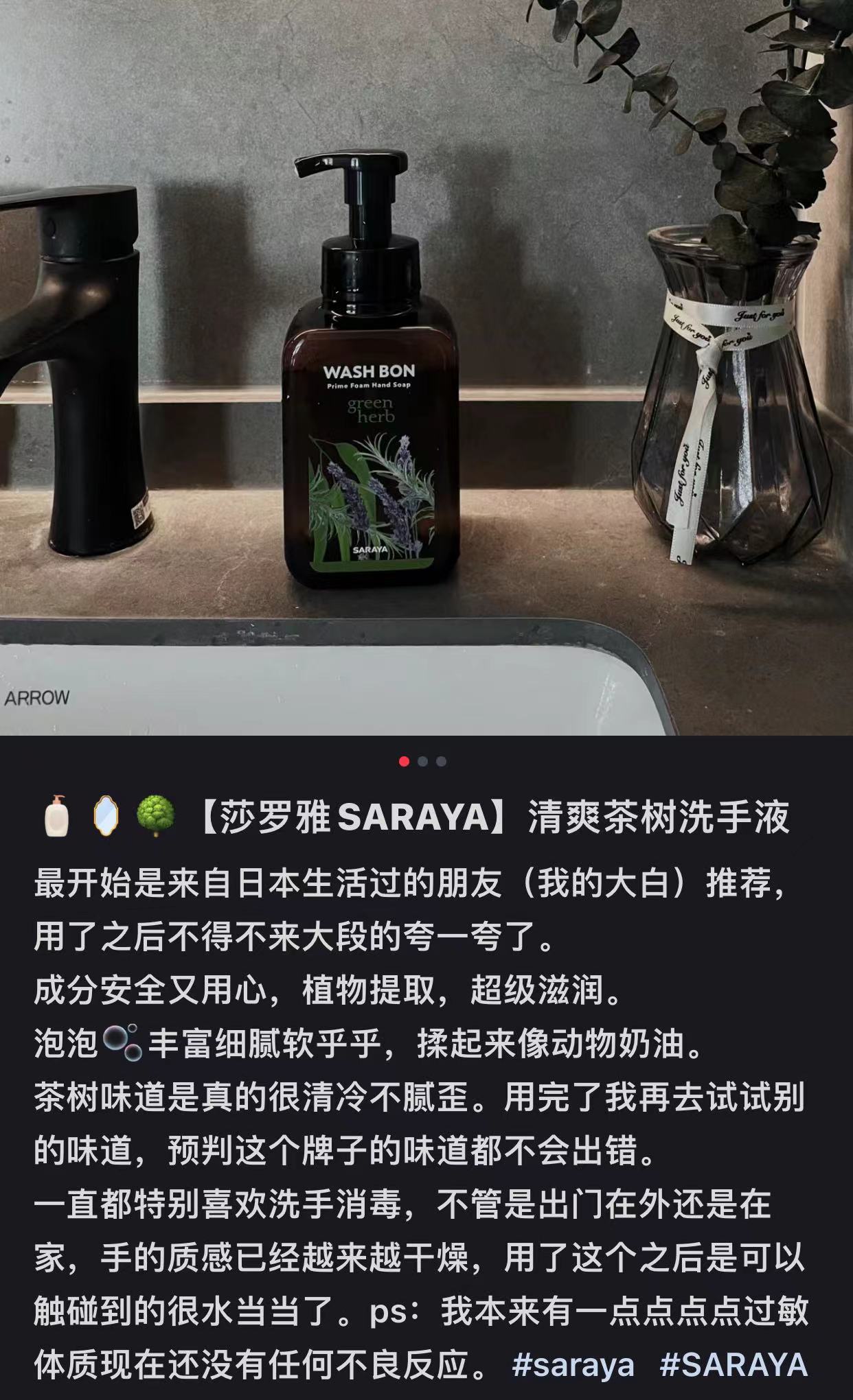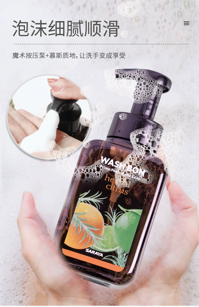 骨灰级老粉,闭眼冲它!来自日本的SARAYA莎罗雅泡沫洗手液,它添加了天然植物精油和甘油配方,洗完手后不仅香香的还很滋润保湿,就像做了一次手部精油SPA,这感觉太美妙了!而且它是500ml大容量,一瓶顶三瓶,超耐用!泵头一按压就有丰富的泡沫,使用超方便!