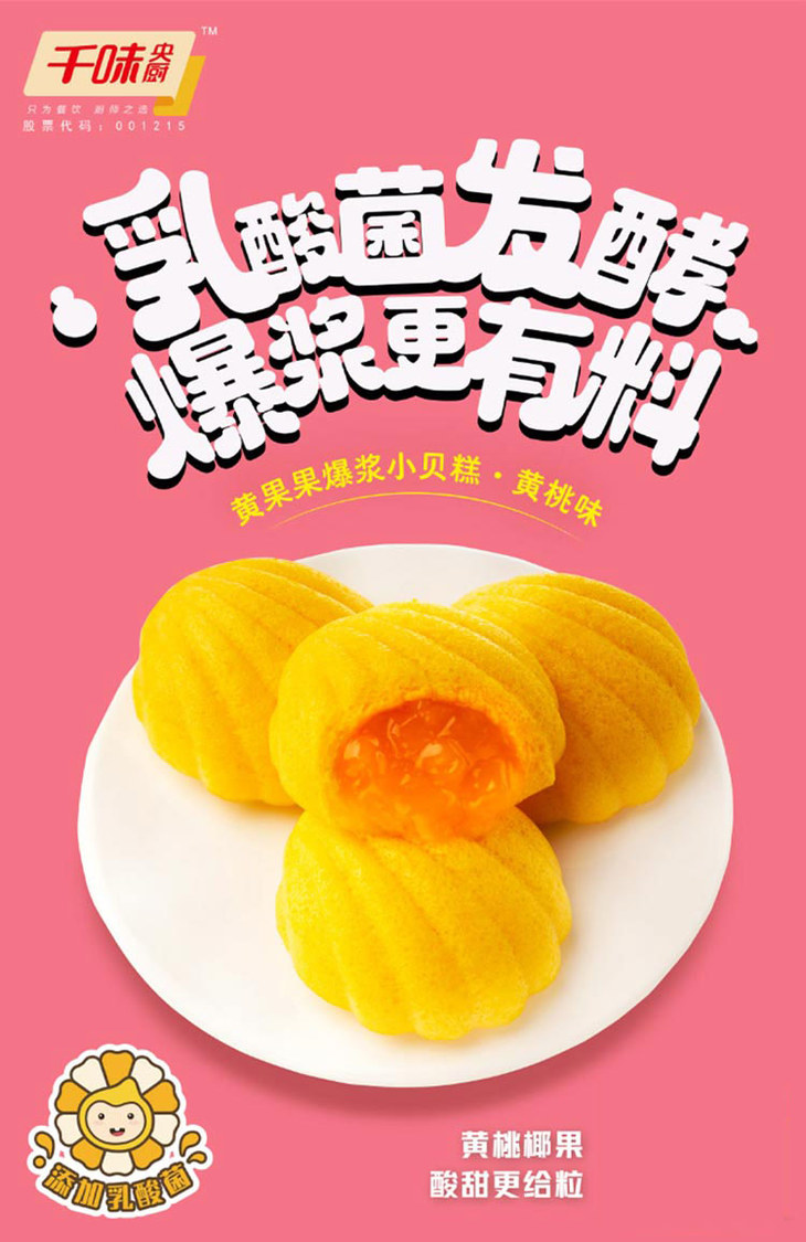 千味央厨爆浆小贝糕(黄桃味、香草牛奶味) 380g/袋(10个) 12袋/件