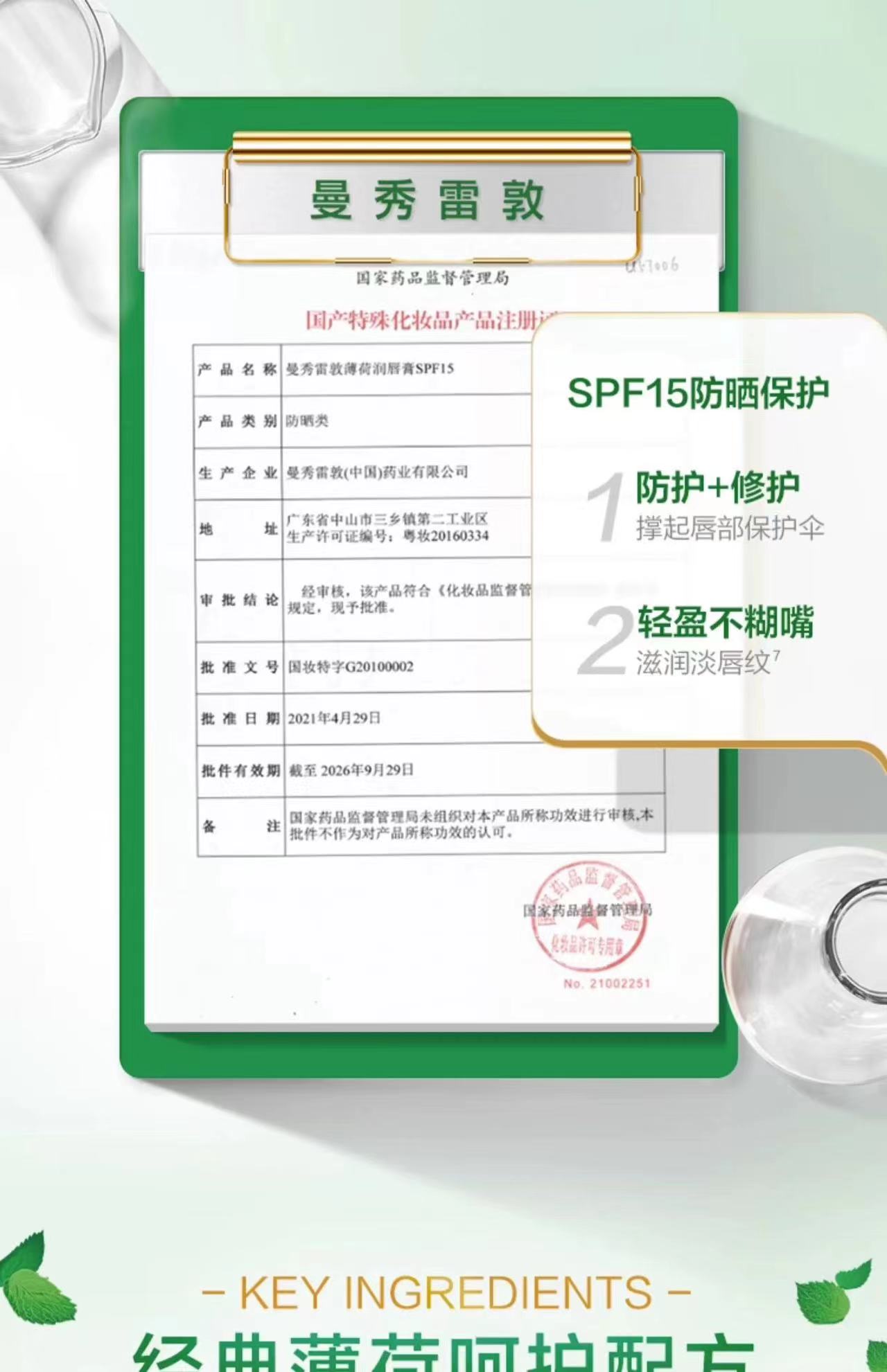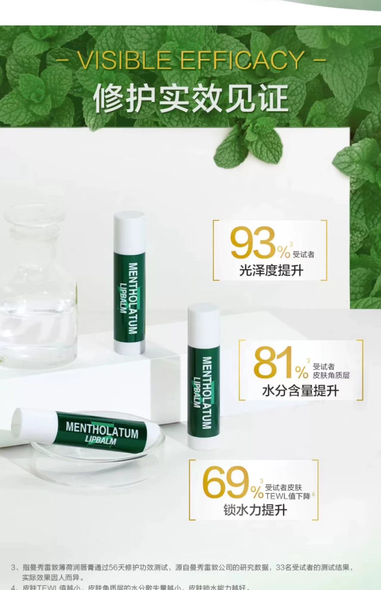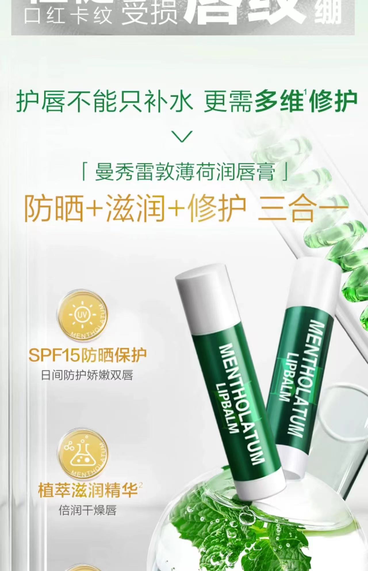曼秀雷敦·无色薄荷润唇膏护唇女男滋润补水 保湿防干裂口红打底