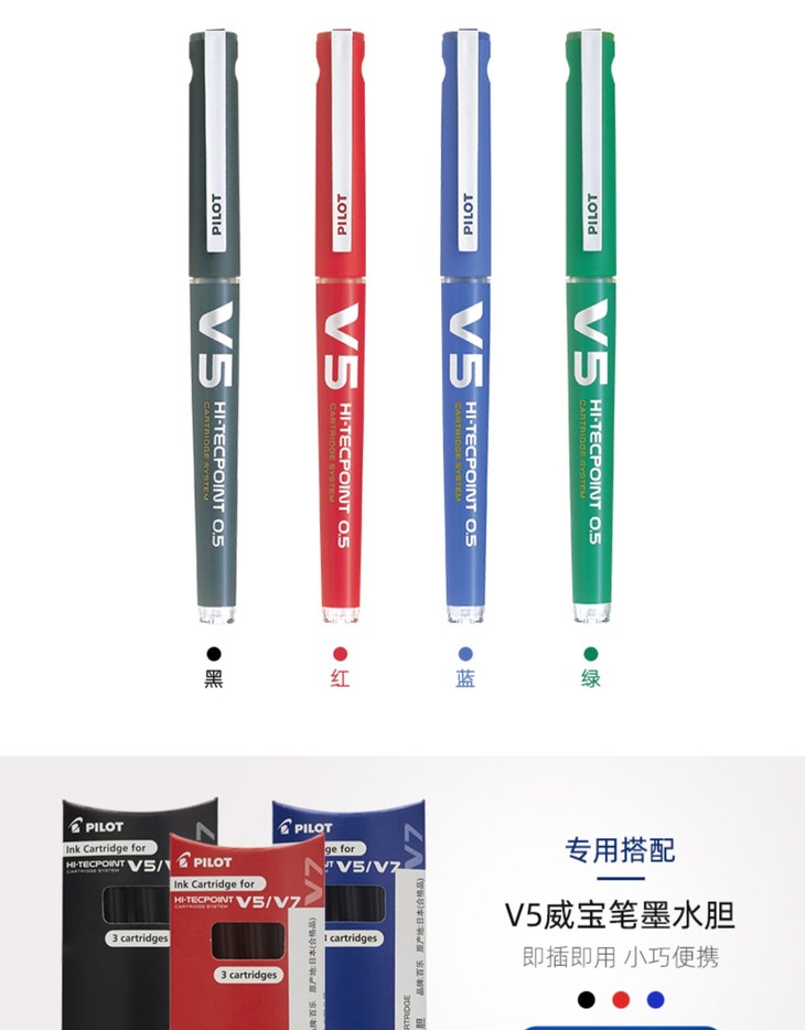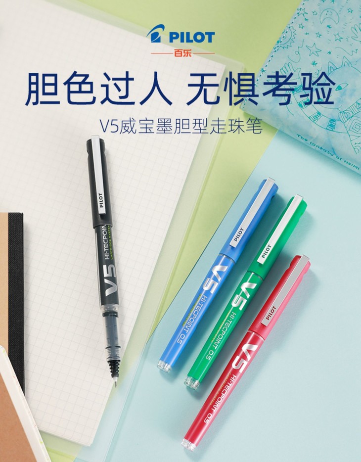 百乐中性笔BXC-V5-BGD-0.5威宝墨胆型走珠笔