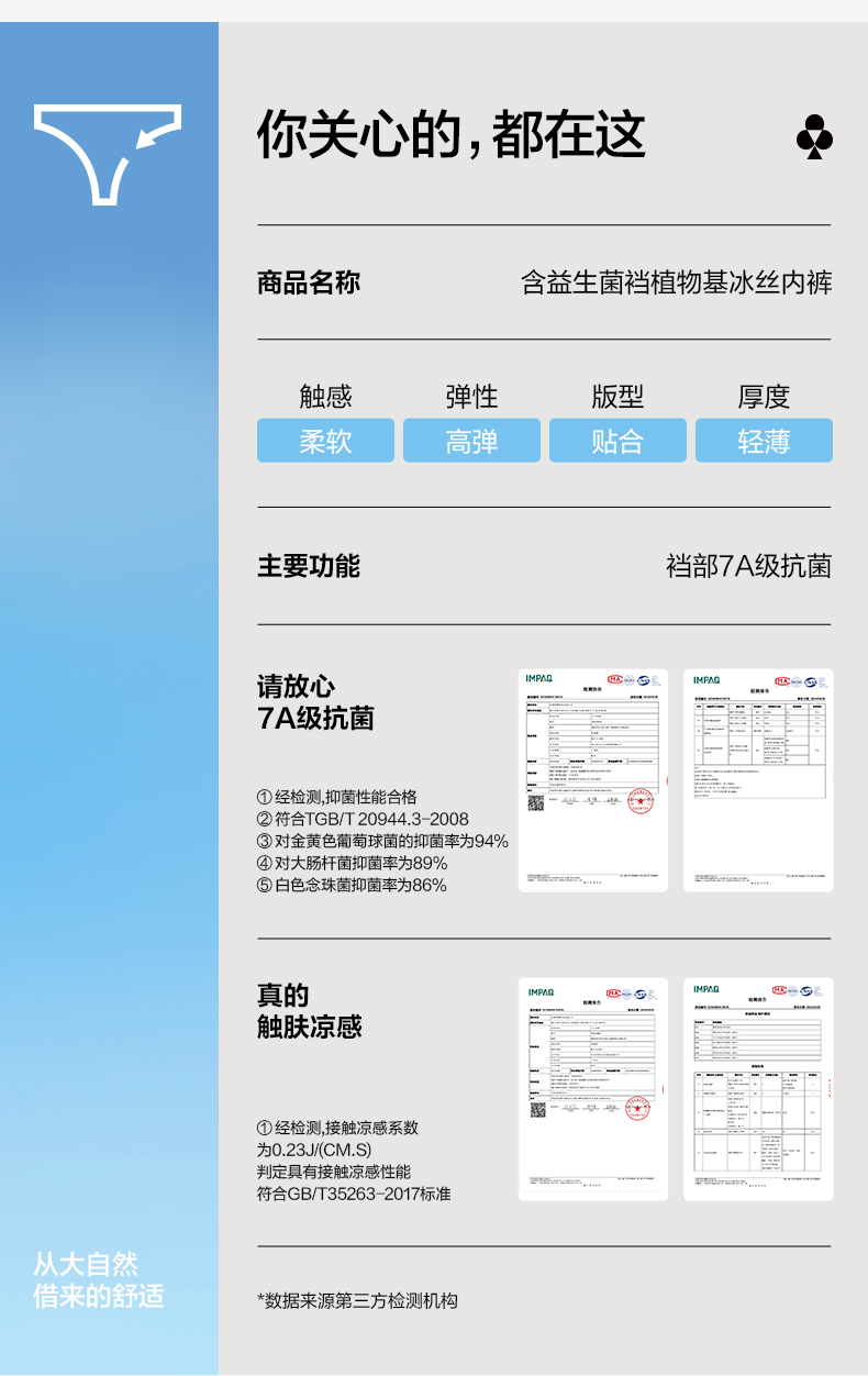 【新品上新】有棵树冰丝益生菌7A抗菌凉感无痕女士内裤3条装-783C