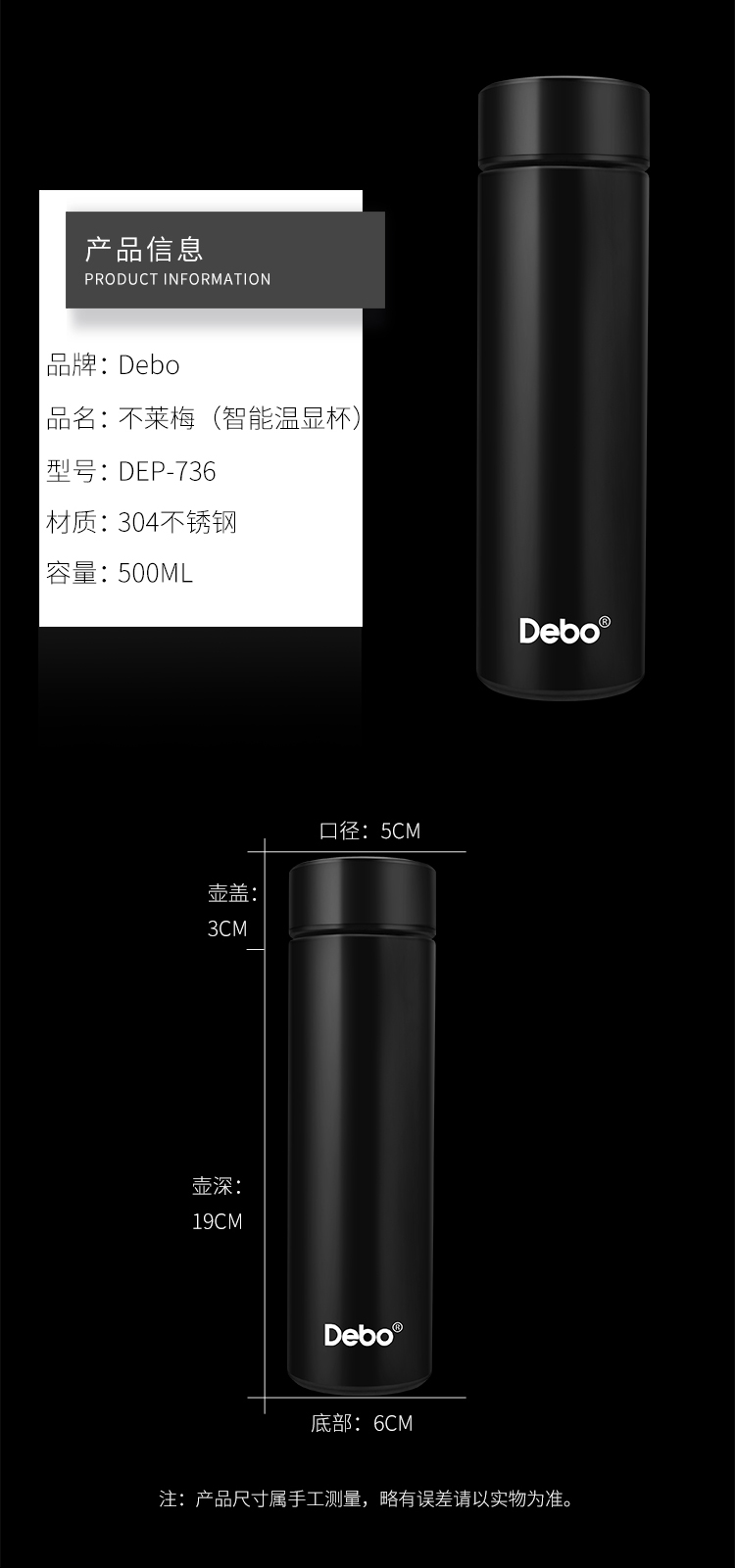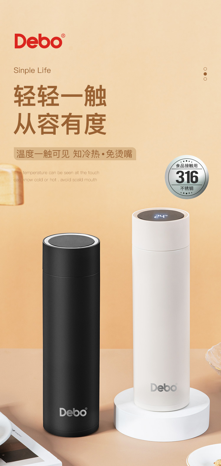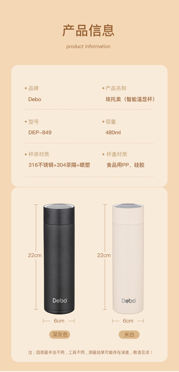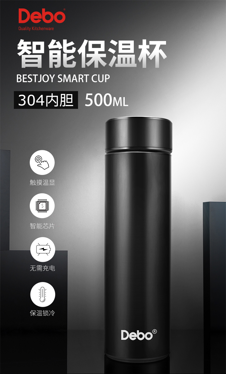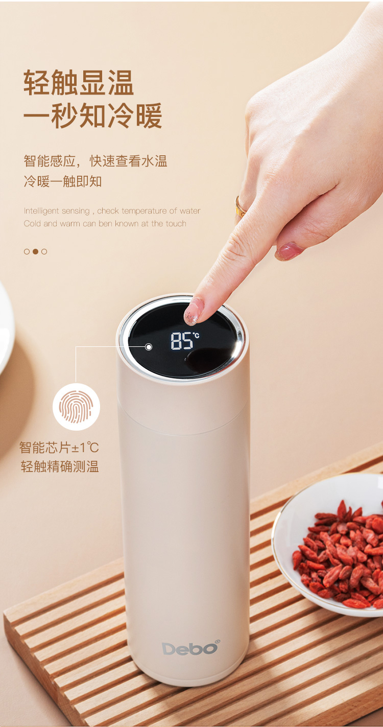 Debo德铂-不莱梅 埃托奥智能温显杯 智能显温杯盖 一触即显 看得见的温度更贴心