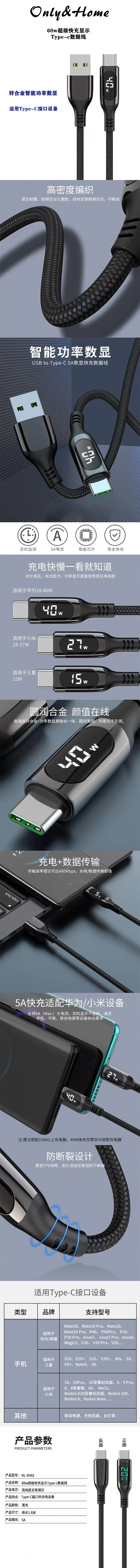 Only&Hom60w超级快充显示Type-c数据线KL-XH01