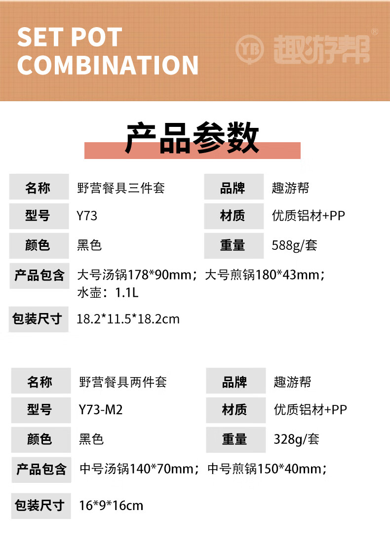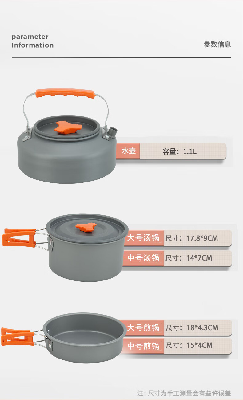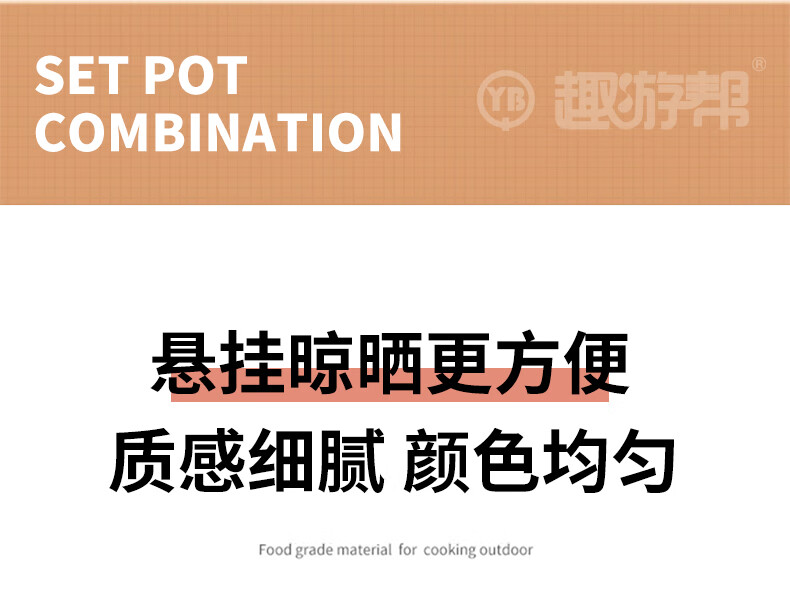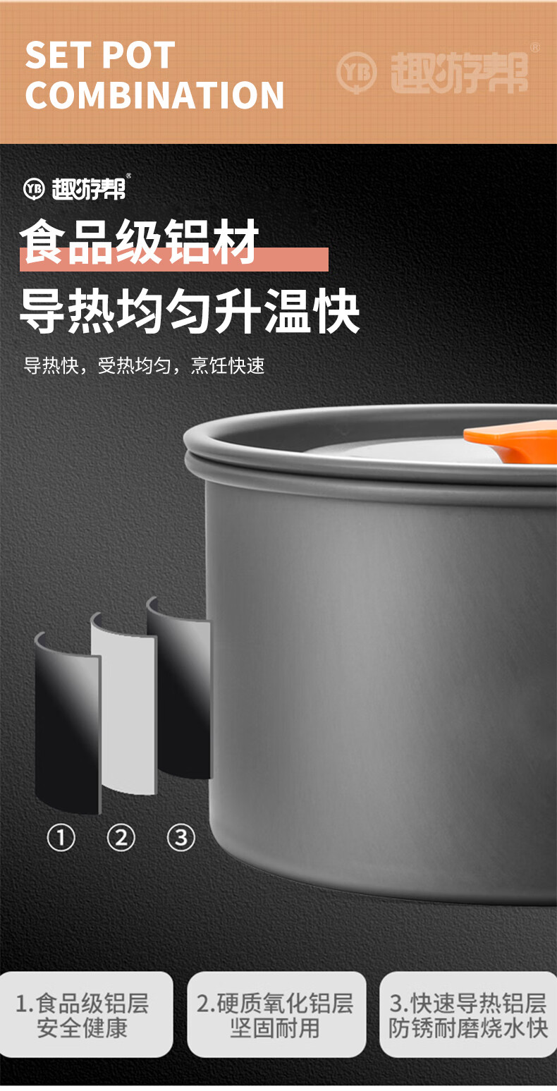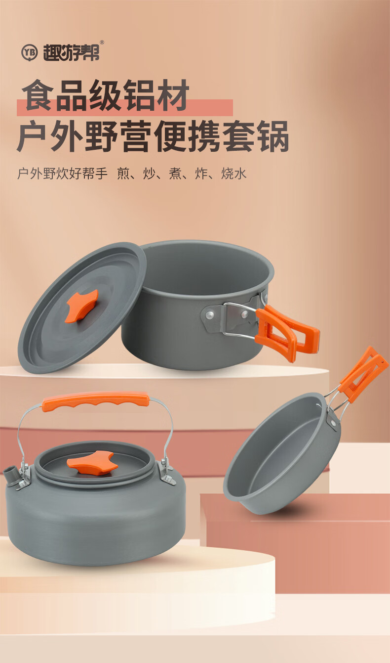 【小家电】趣游帮水壶汤锅煎锅野营餐具三件套Y73 HF