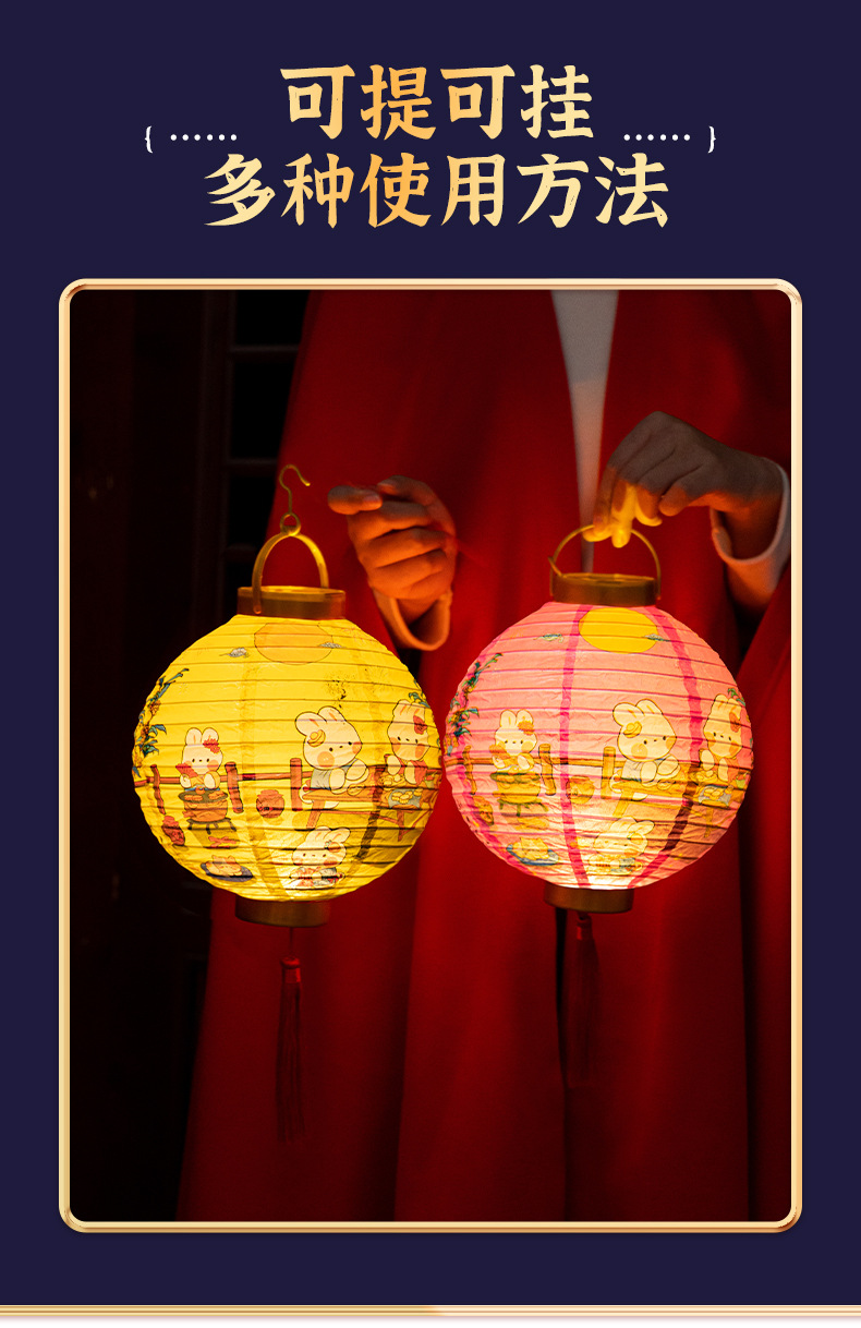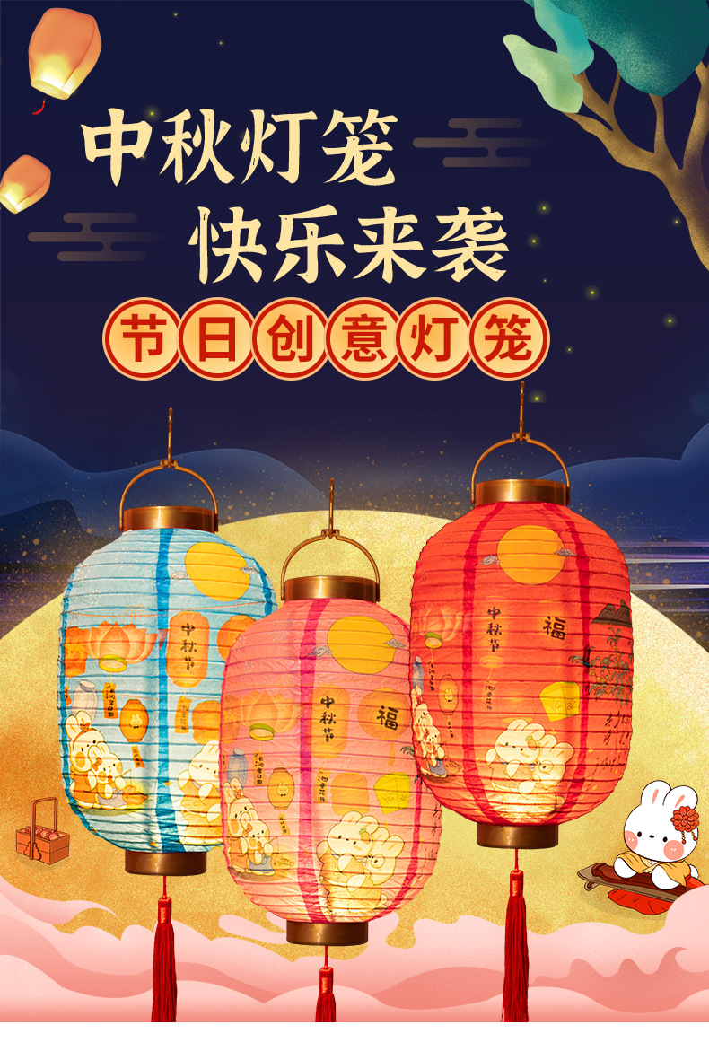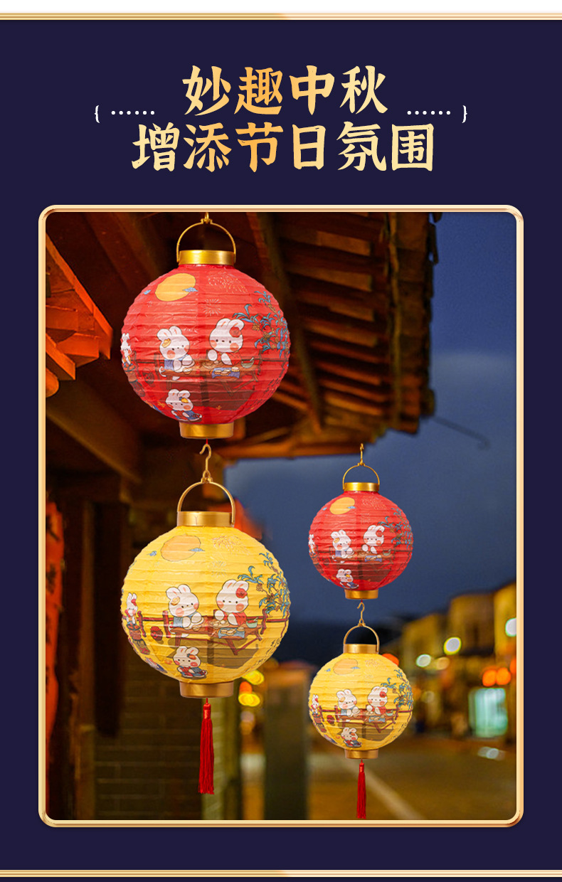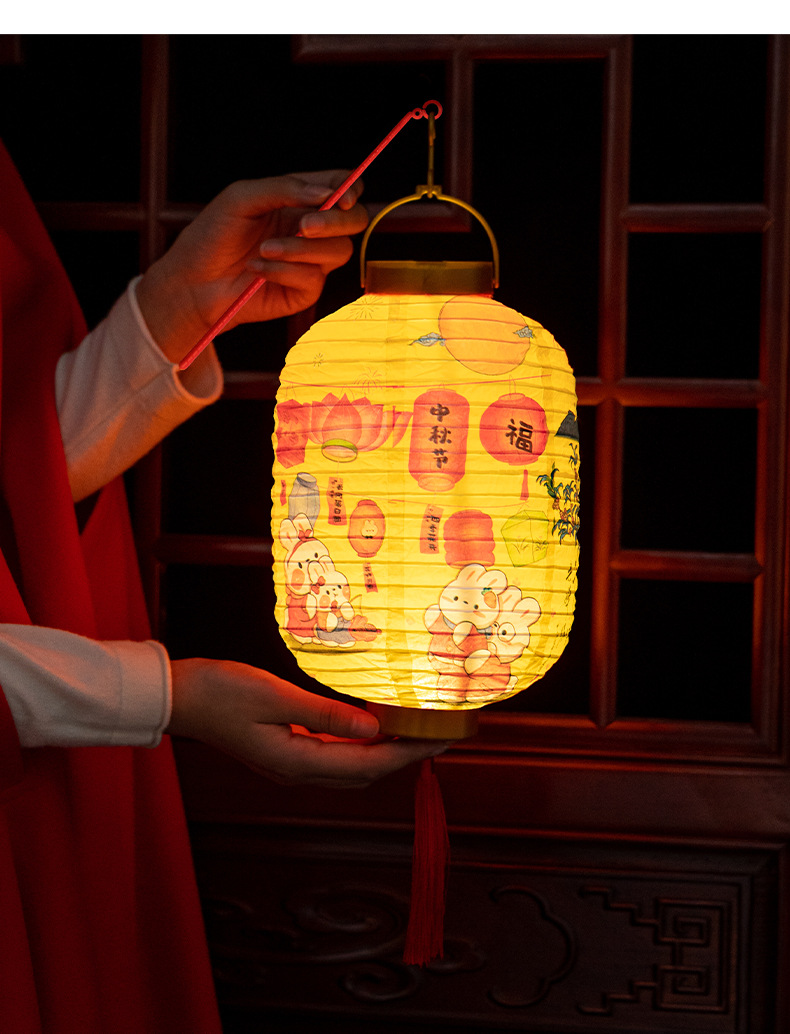 【中秋佳节!节日创意灯笼】中秋节卡通兔子,装饰纸灯笼,手提发光古风灯笼lish