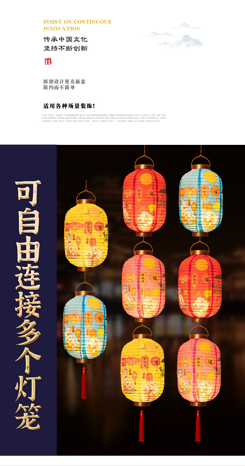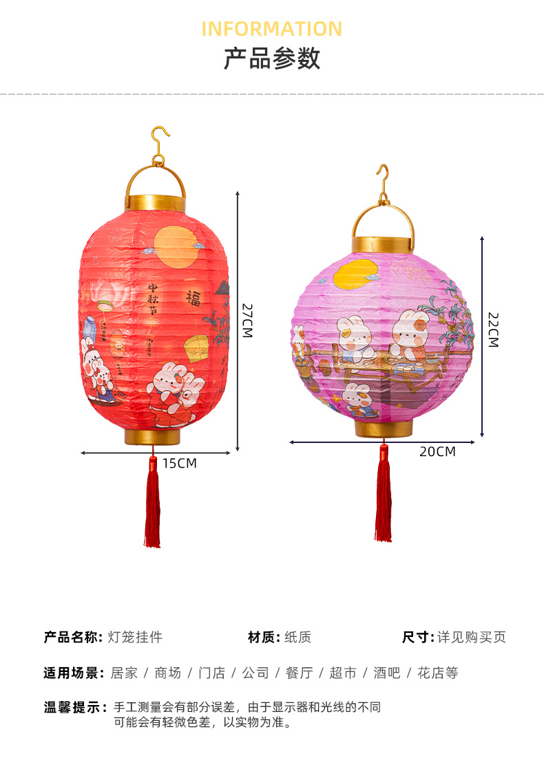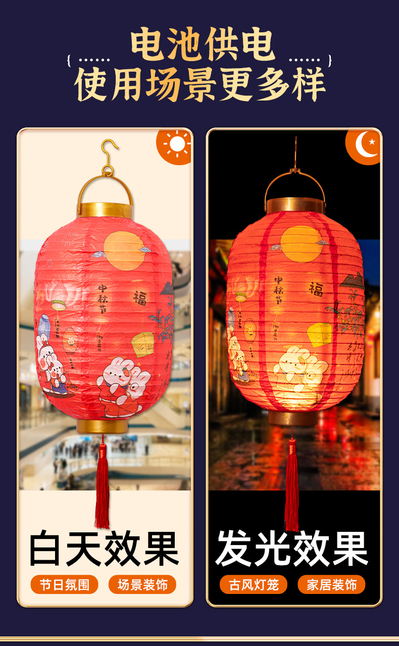 【中秋佳节!节日创意灯笼】中秋节卡通兔子,装饰纸灯笼,手提发光古风灯笼lish