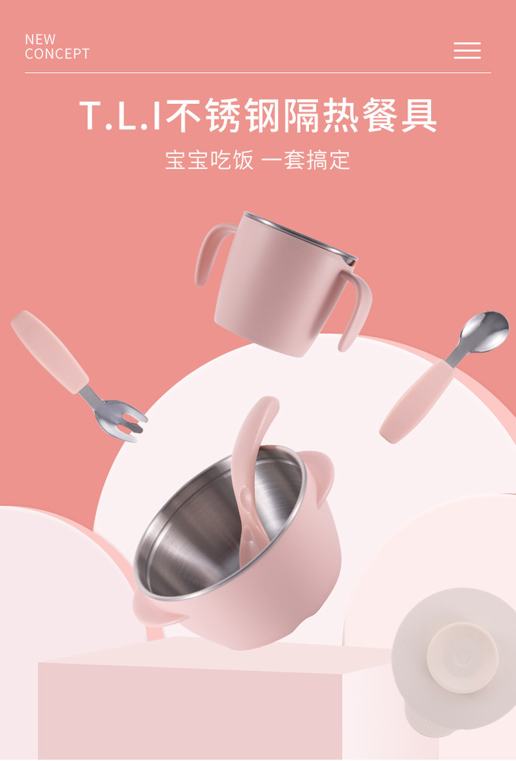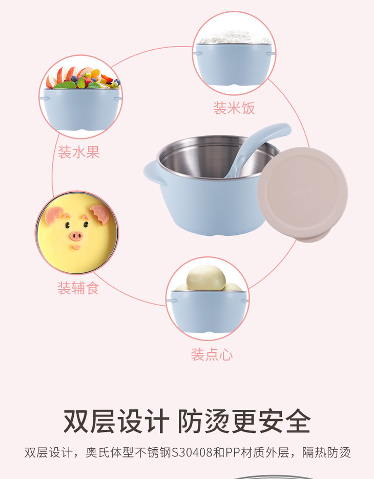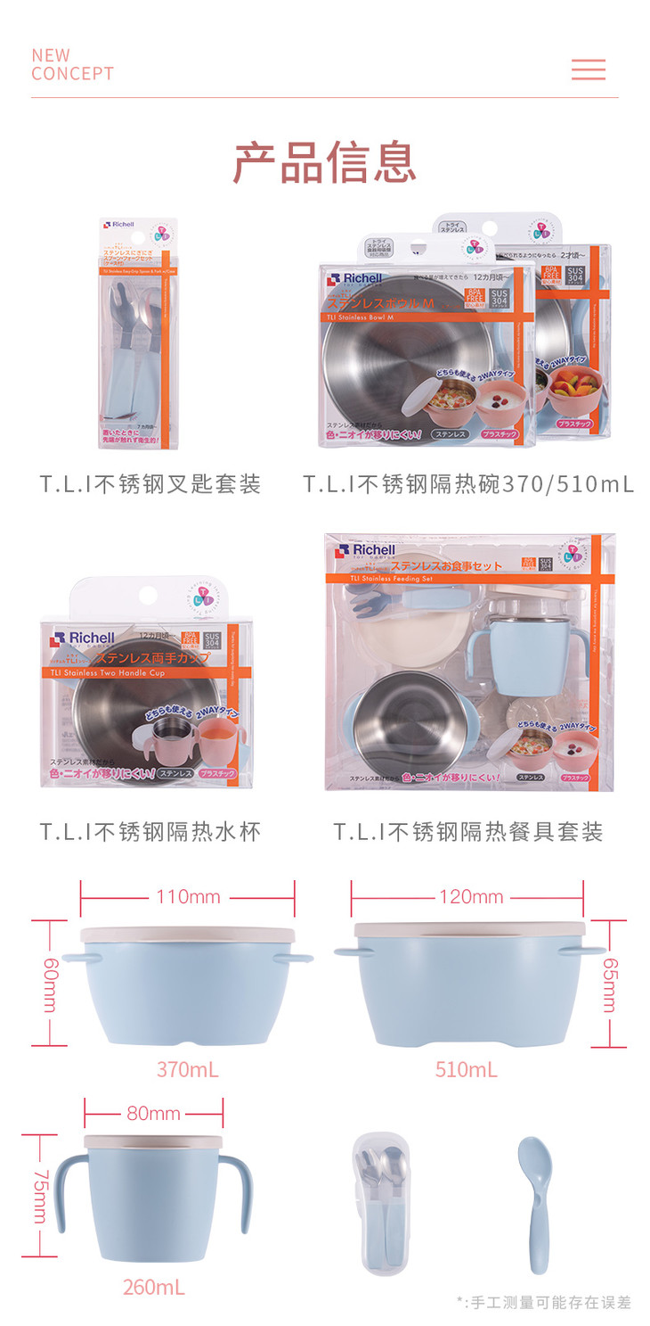 日本Richell利其尔 T.L.I.不锈钢隔热碗 370ml / 510ml 宝宝辅食碗