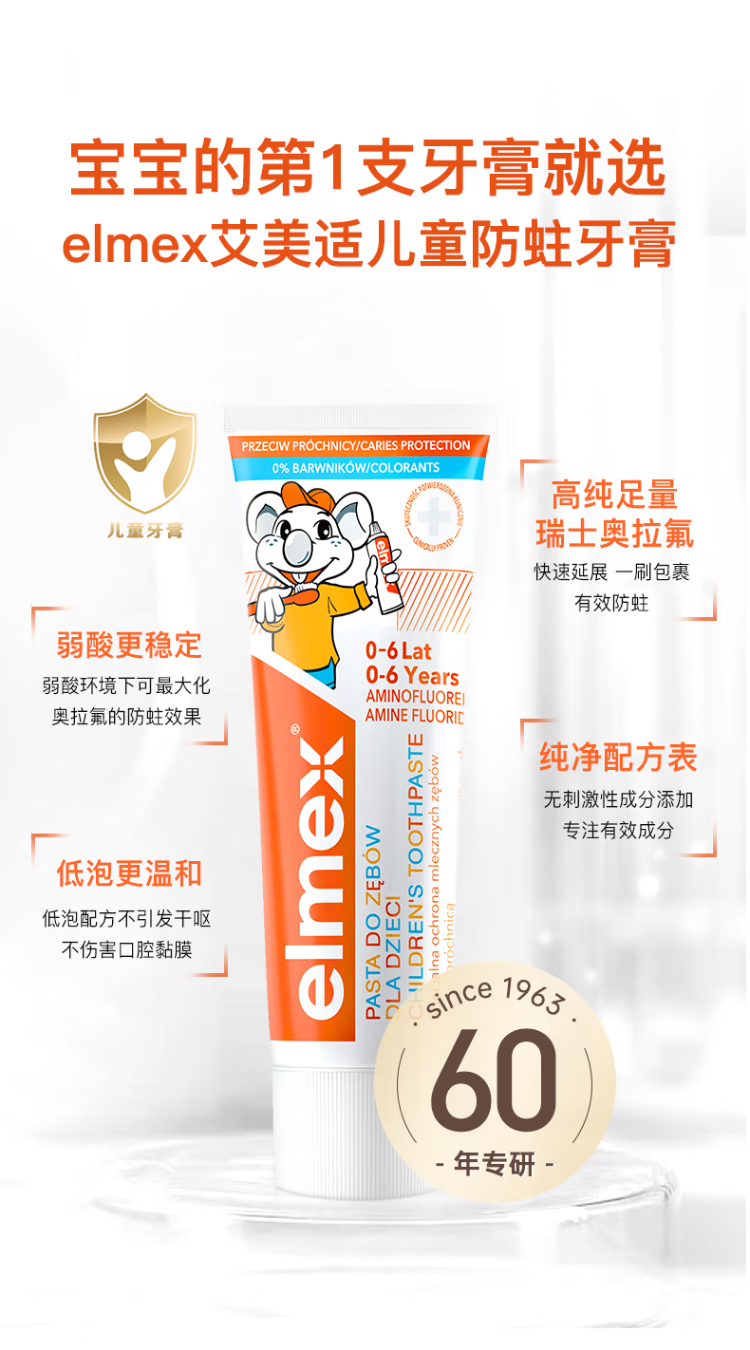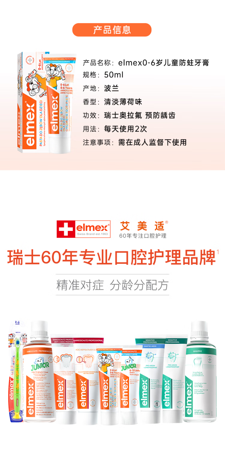 艾美适0-6岁儿童防蛀牙膏50ml/支