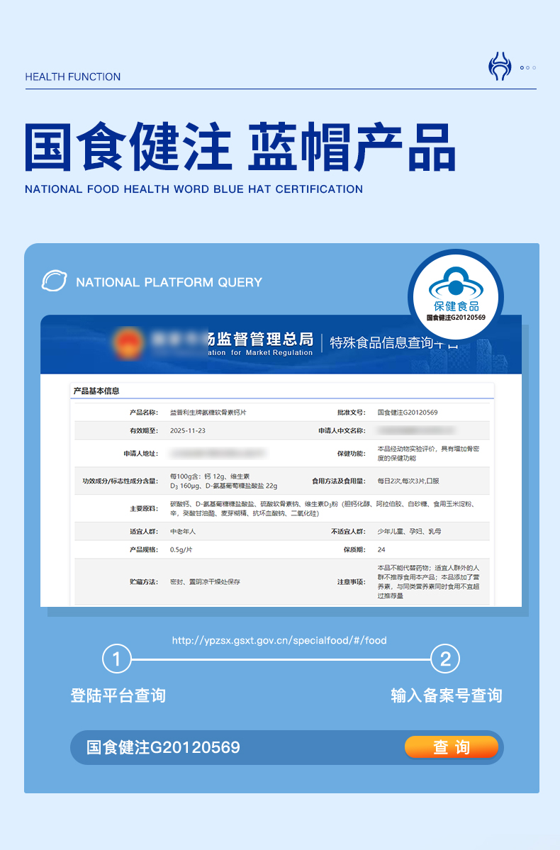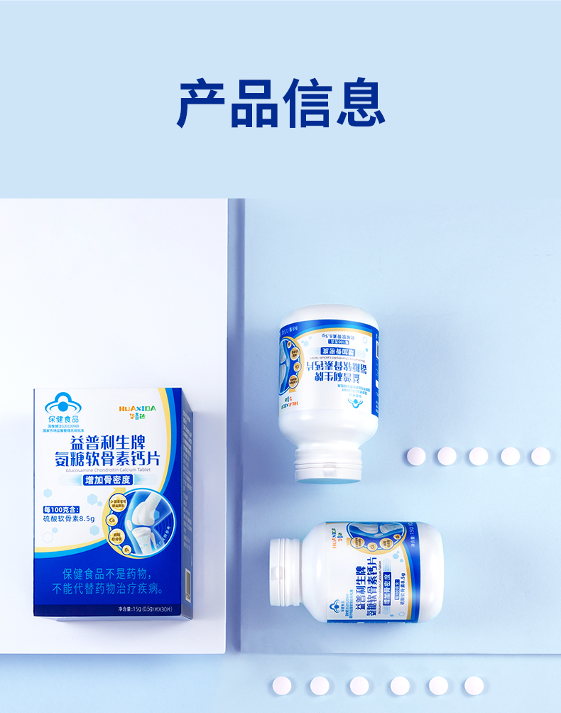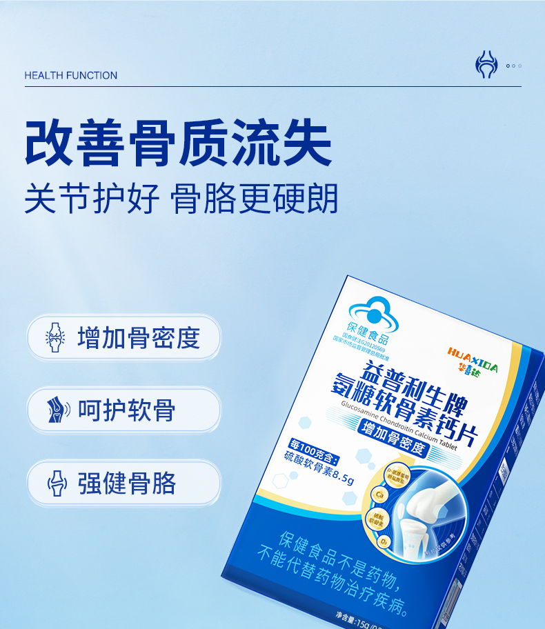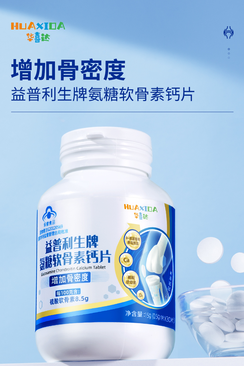 华喜达益普利生牌氨糖软骨素钙片30片增加骨密度改善关节呵护软骨