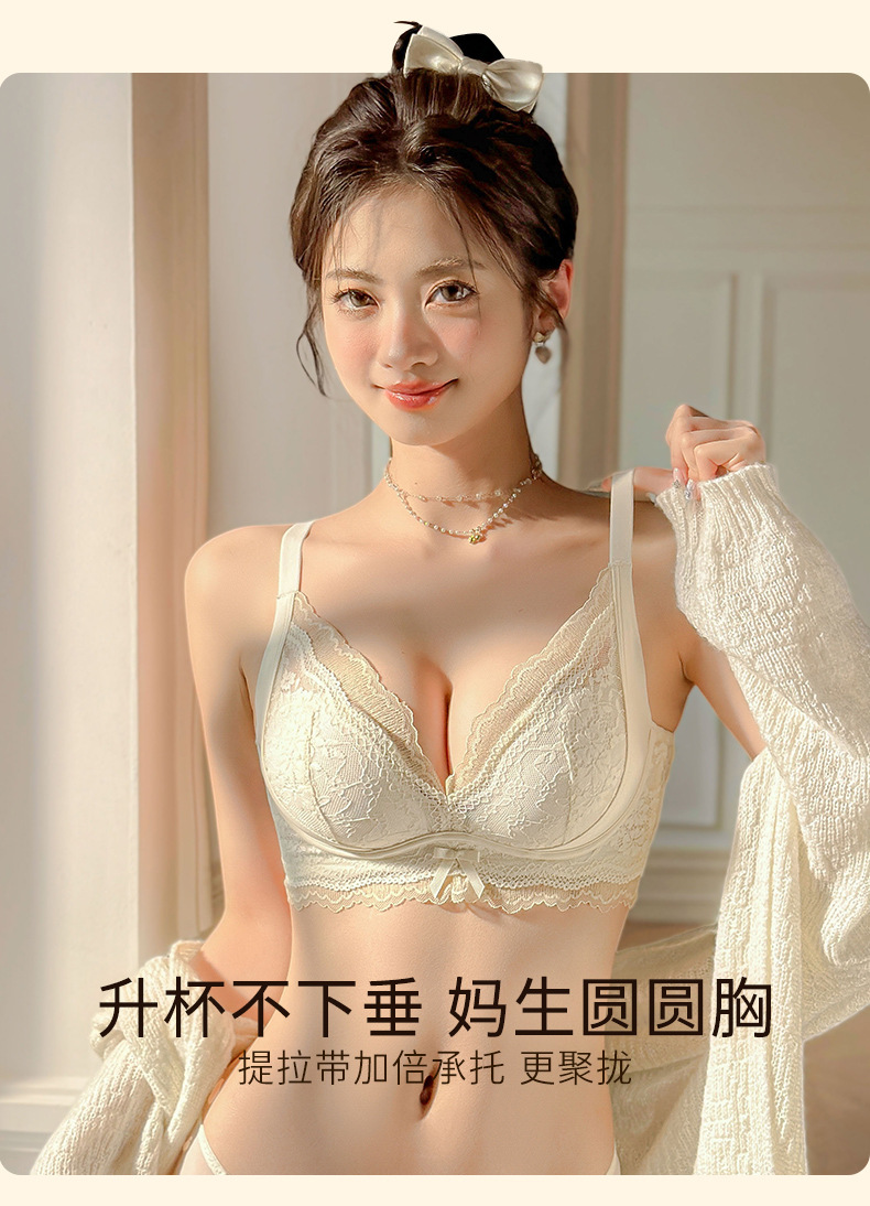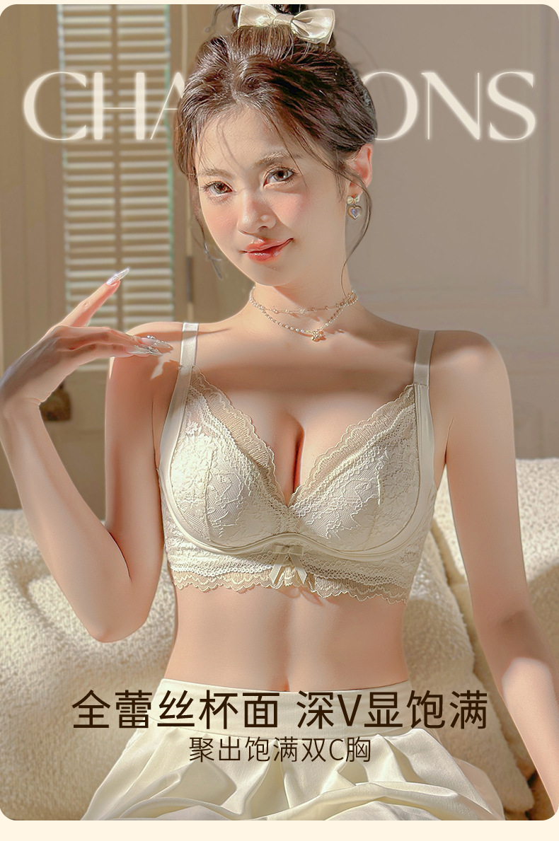 【法系甜美蕾丝内衣!内裤免费送】小胸女性必备!让你跨越A到C,摆脱平胸困扰!性感蕾丝杯面,深V设计显饱满,防下垂收副乳。四色可选,甜美或性感尽在你手!