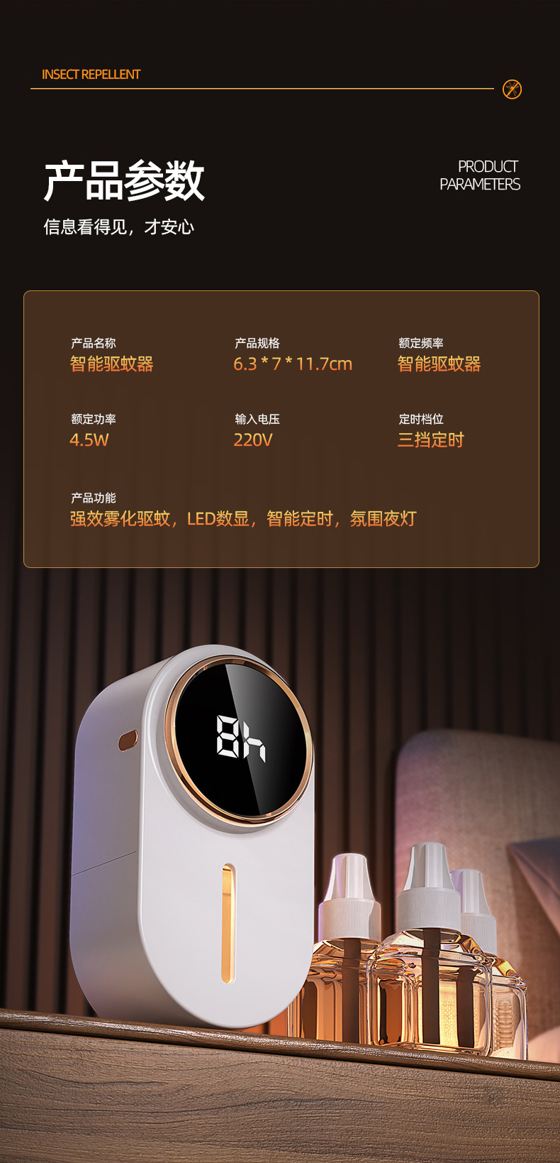 【三档定时驱蚊神器】家居必备驱蚊神器!母婴孕妇无需担心,安全插电,三档定时,让家中优雅氛围再无蚊扰!