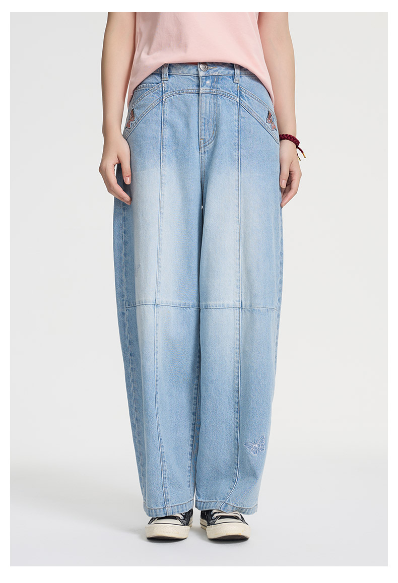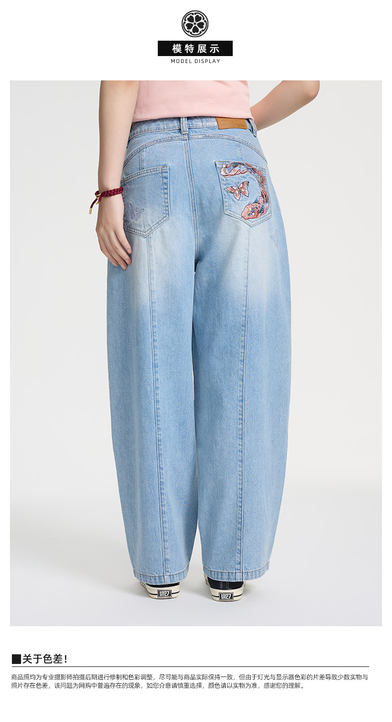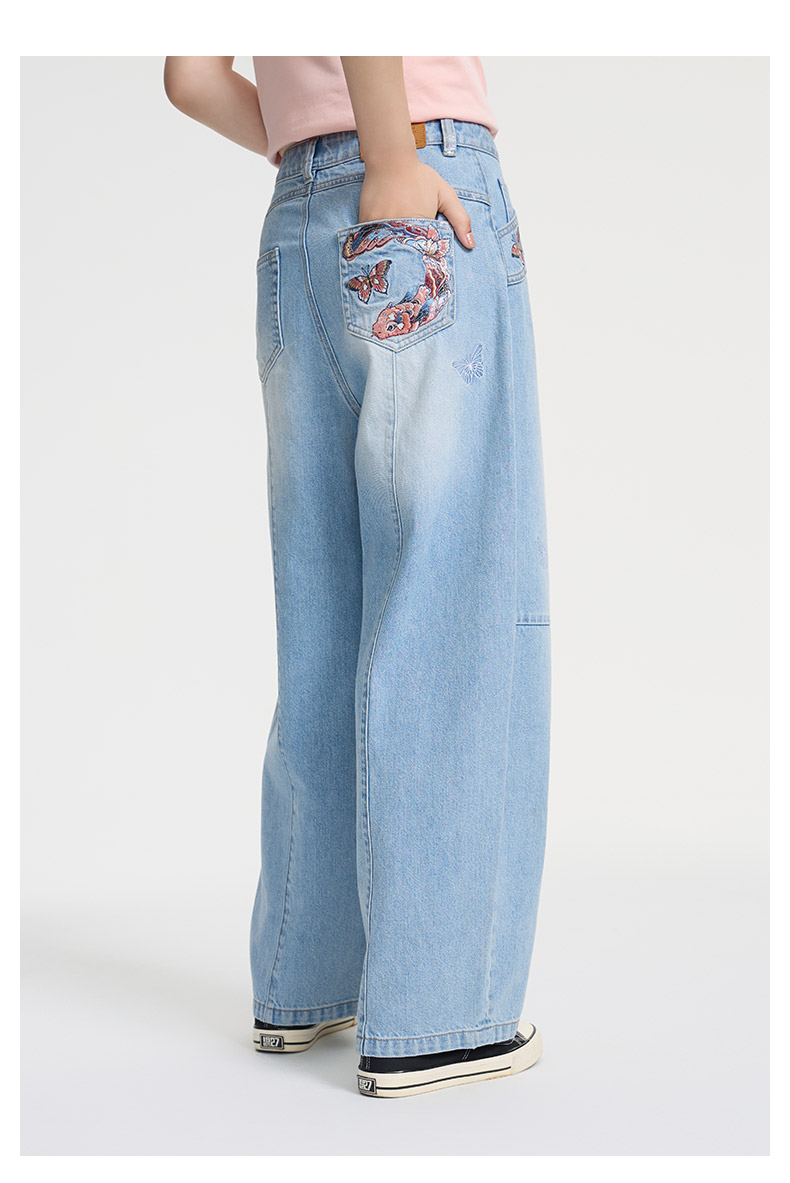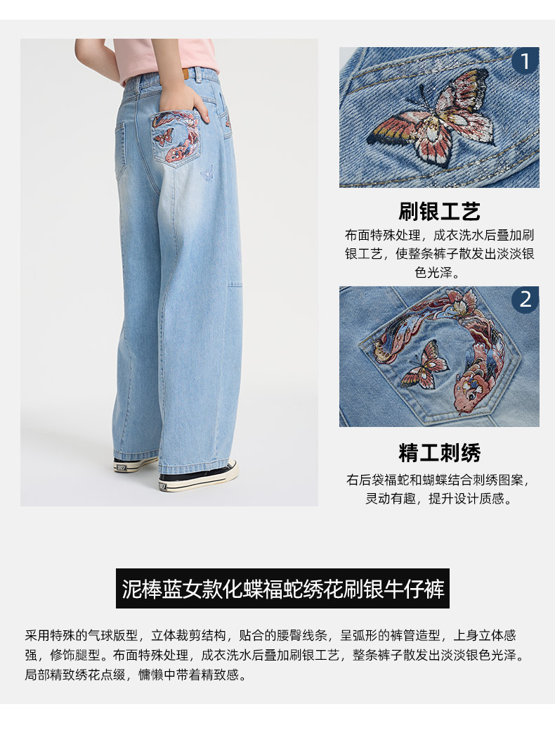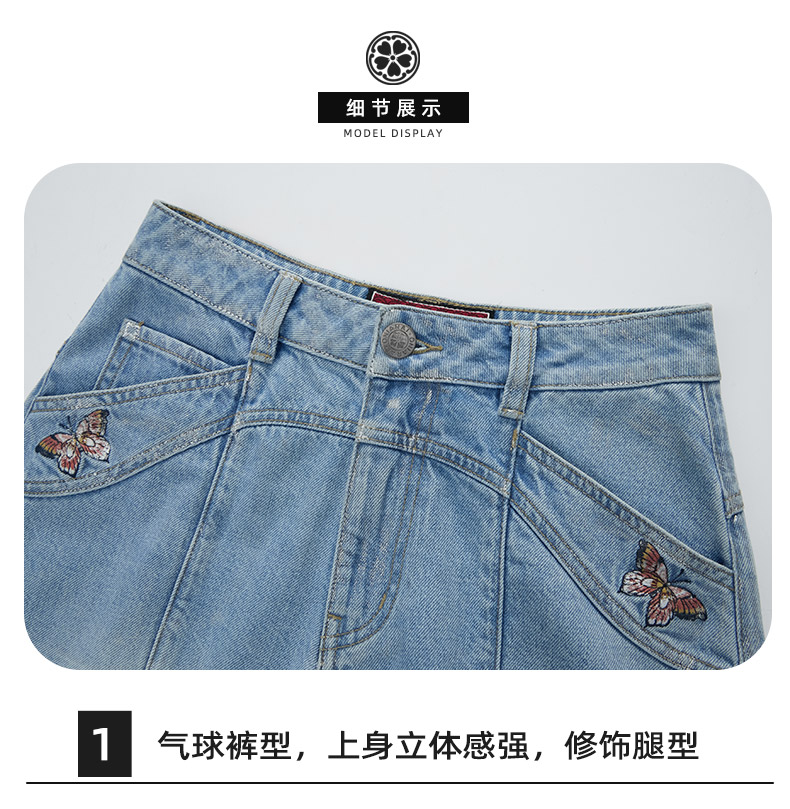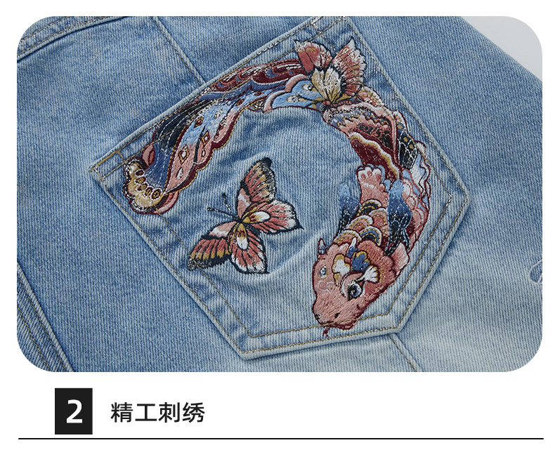 ONIARAI/鬼洗25春夏泥棒蓝女款化蝶福蛇绣花刷银牛仔裤 25N5402