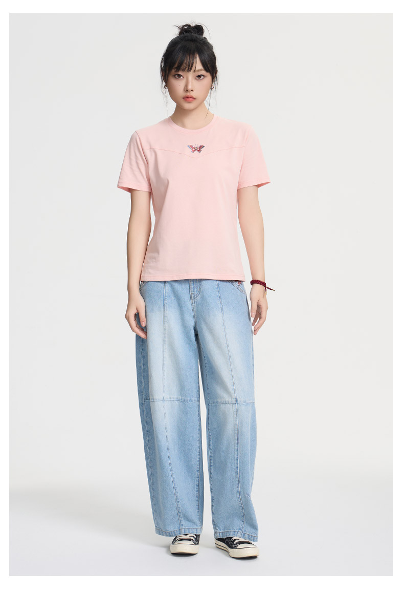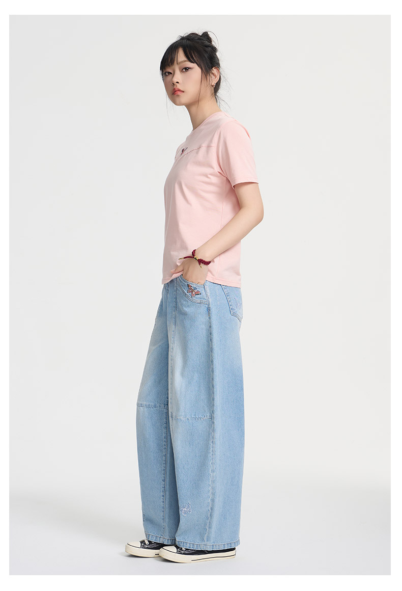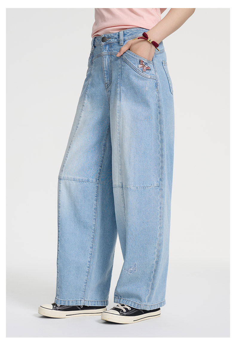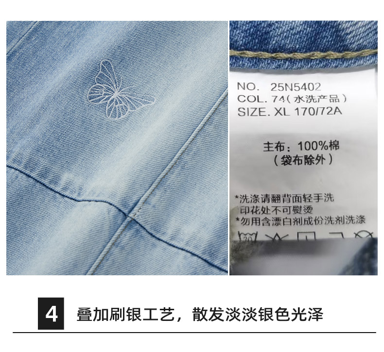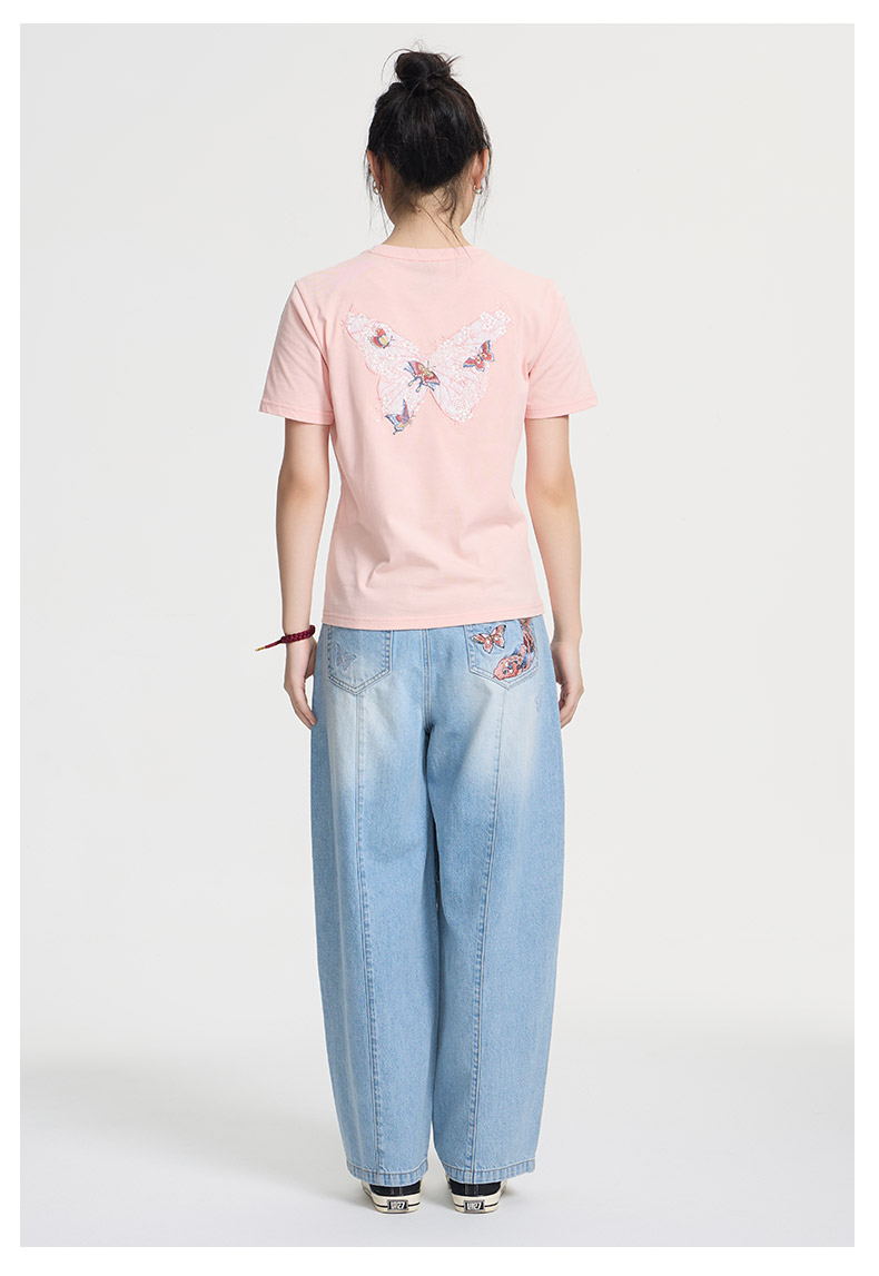 ONIARAI/鬼洗25春夏泥棒蓝女款化蝶福蛇绣花刷银牛仔裤 25N5402