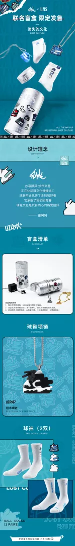 UZIS x 张呵呵艺术家 联名款《消失的文化》透气休闲运动长袜项链盲盒 男女同款