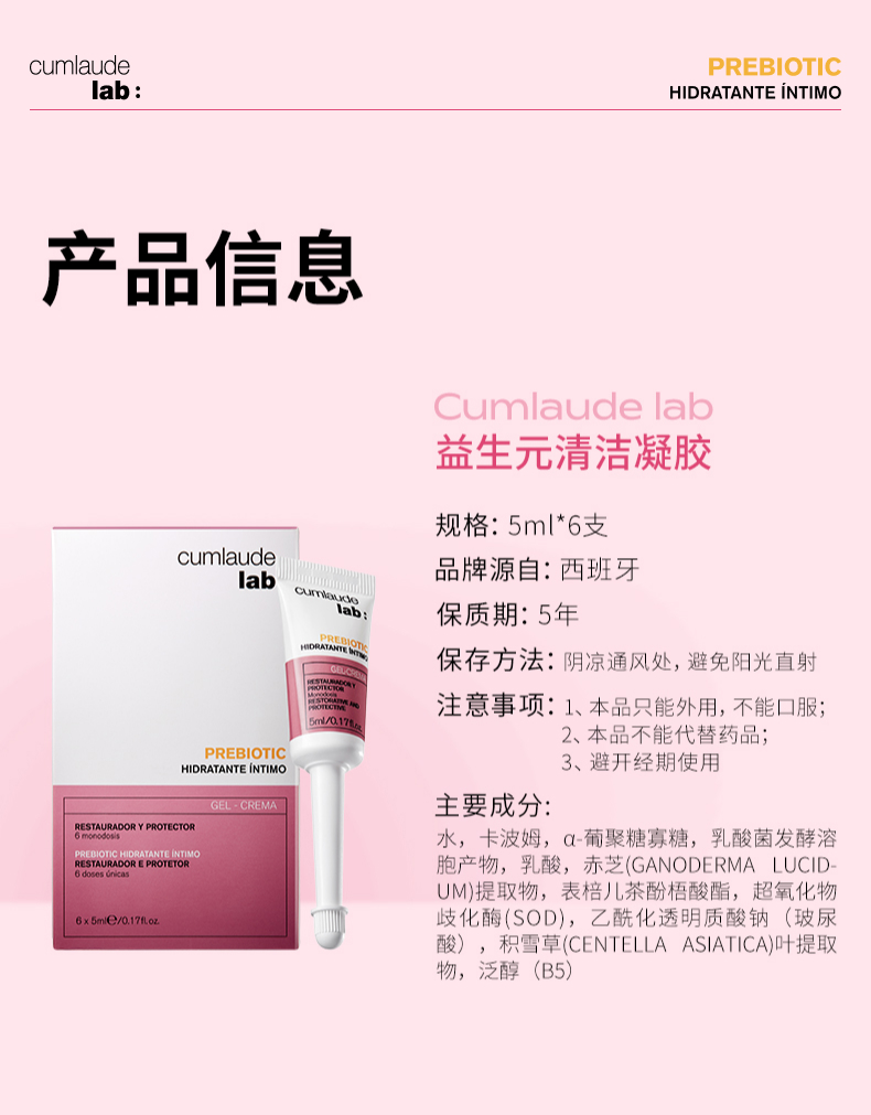 珂蔓朵 益生元凝胶 6*5ml+送内衣洗液50ml*1袋
