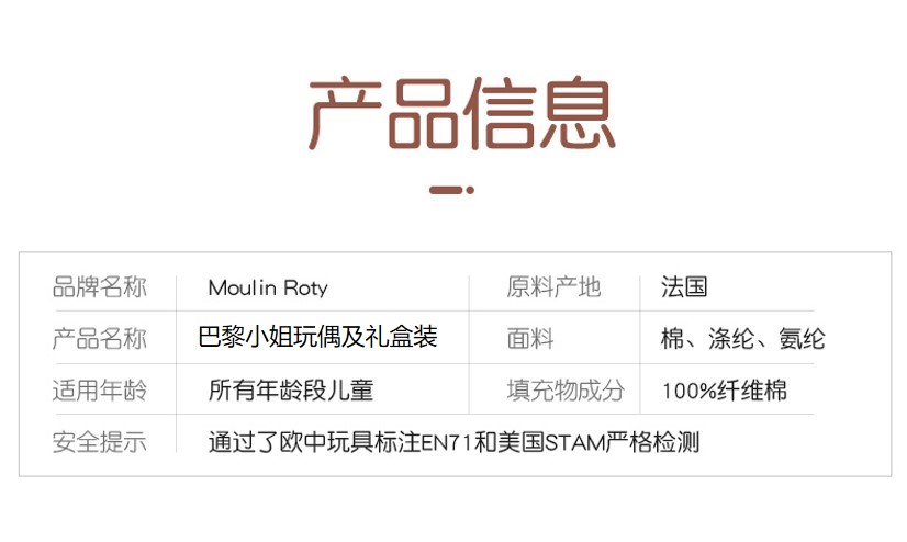 【预售】法国进口moulinroty茉兰若缇巴黎淑女洋娃娃礼盒情人节生日礼物