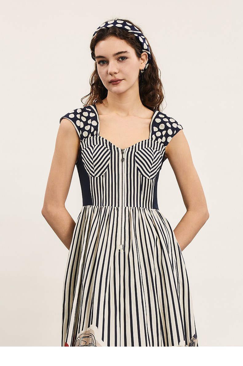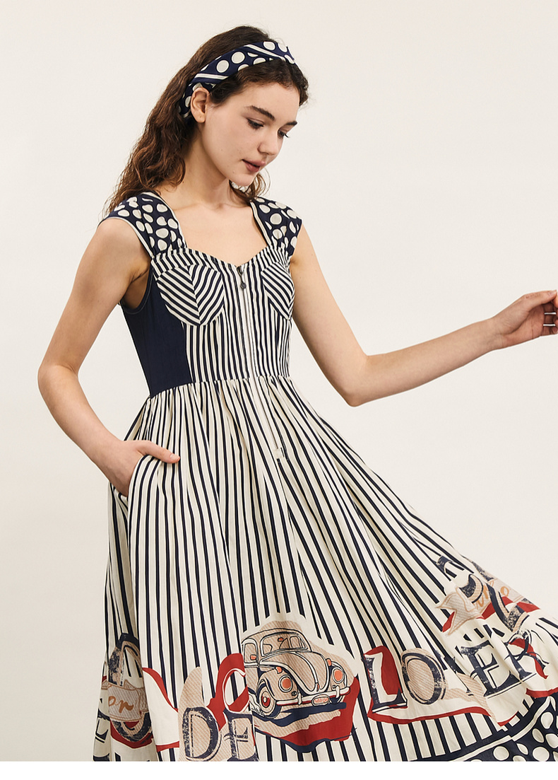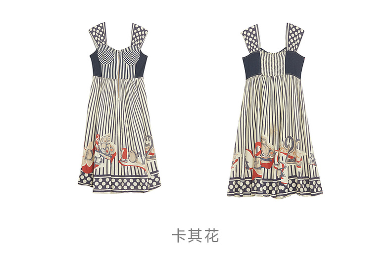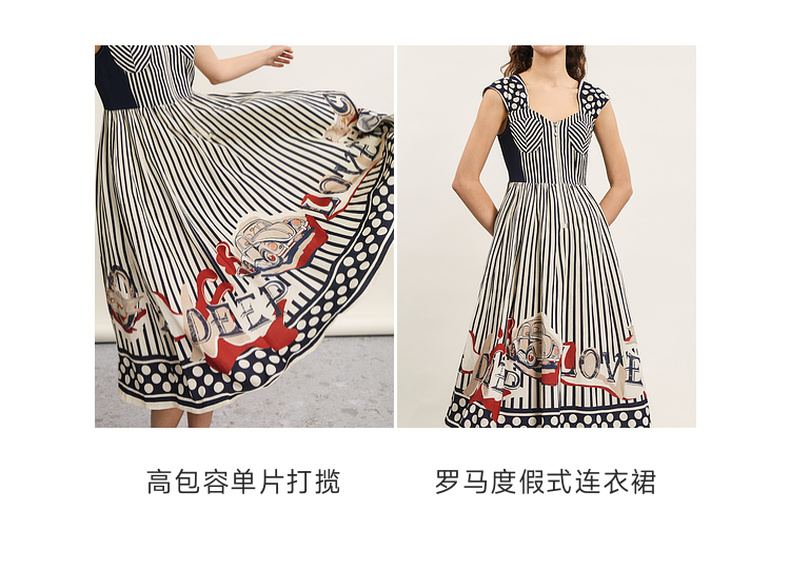 谜底吊带连衣裙2024夏季新品度假风复古黑白条绣花长裙242ML0678