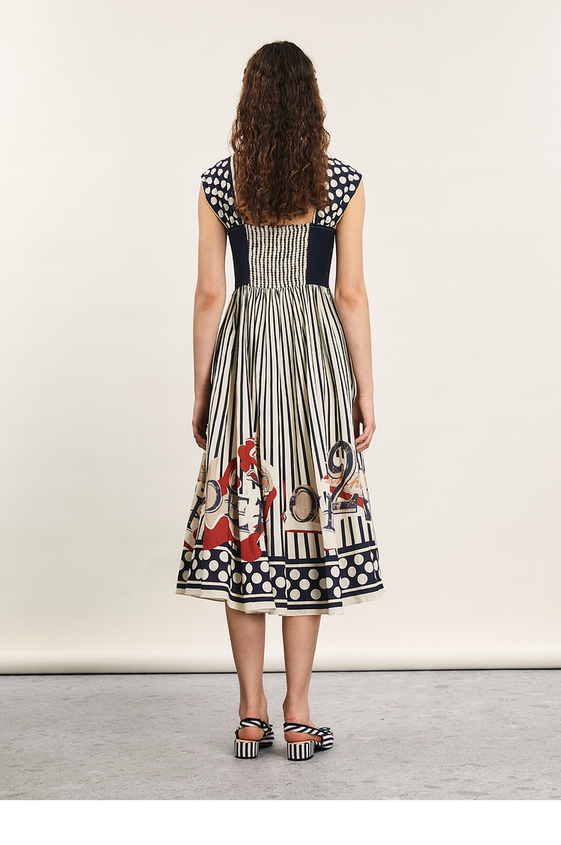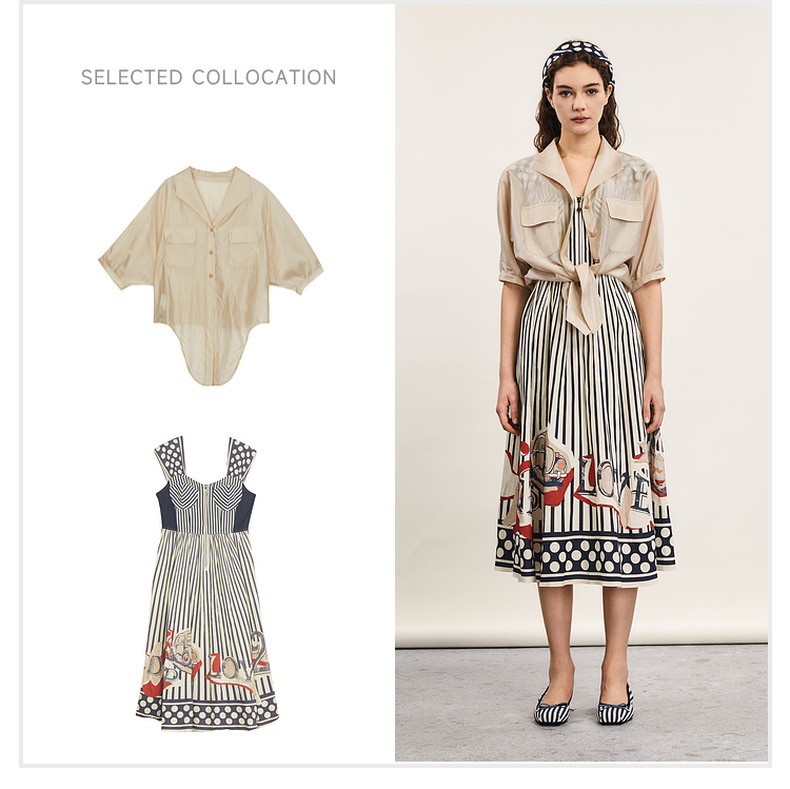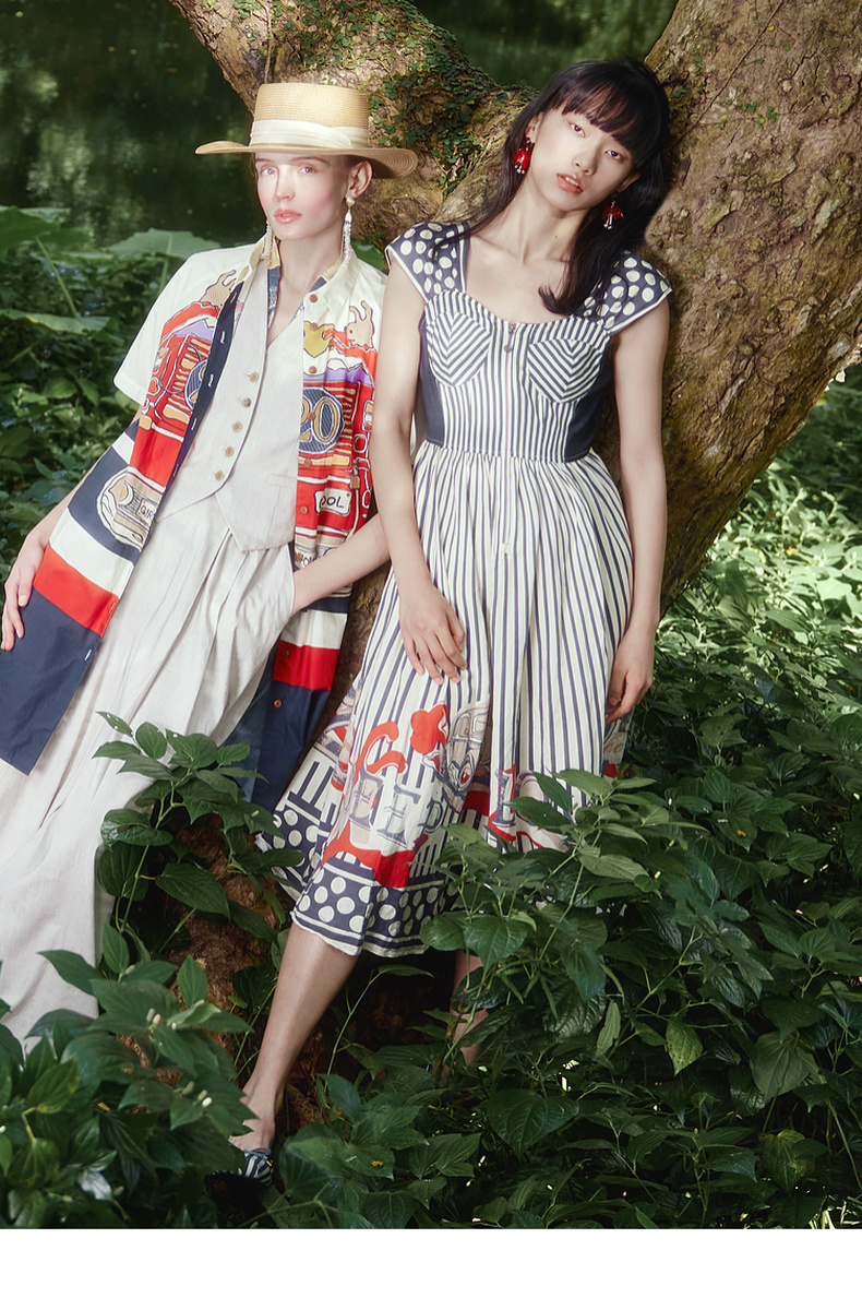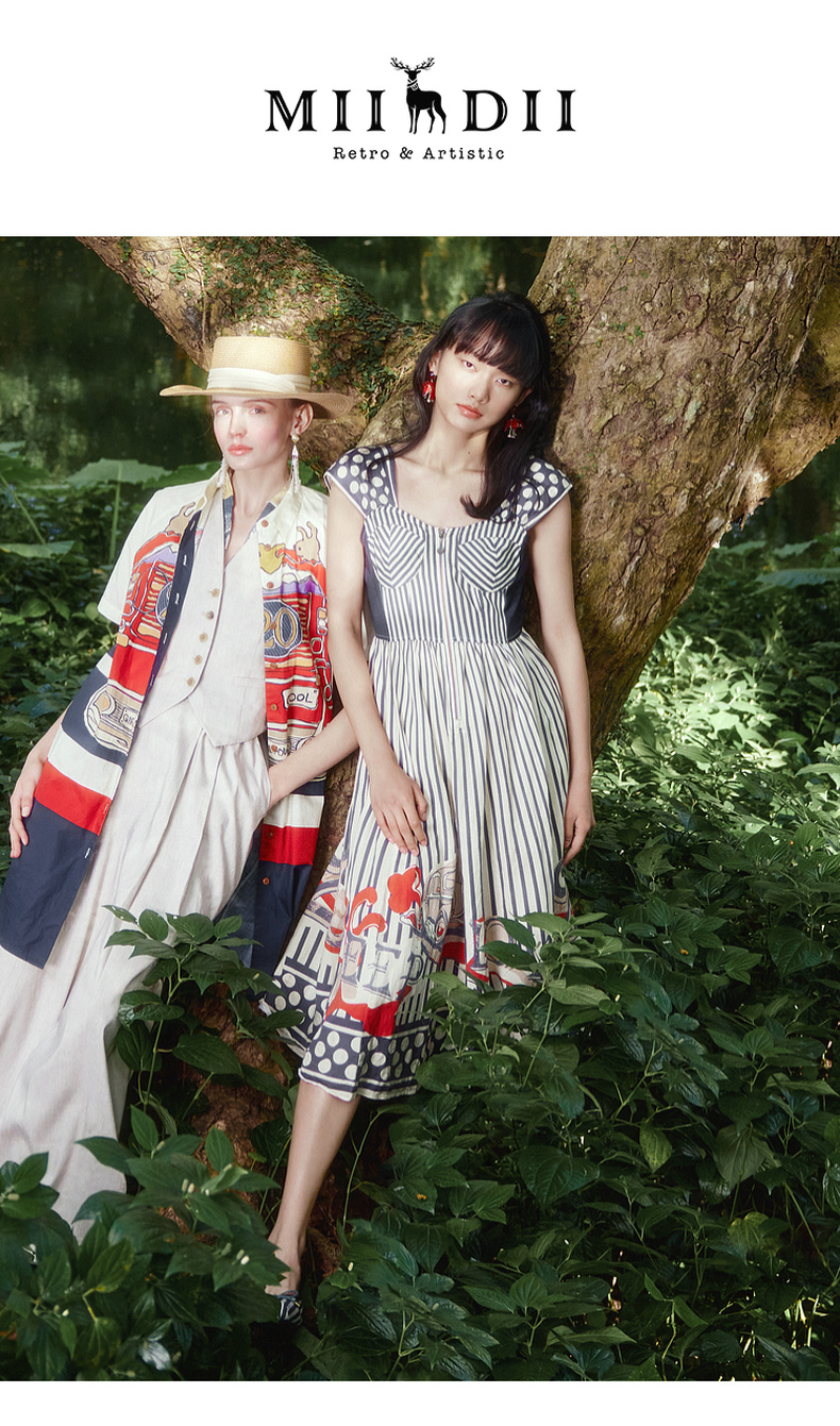 谜底吊带连衣裙2024夏季新品度假风复古黑白条绣花长裙242ML0678