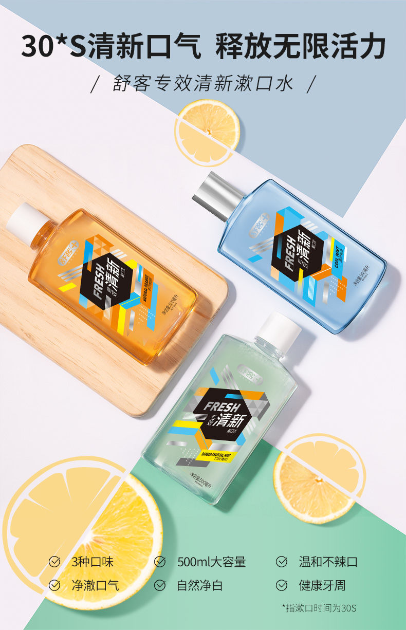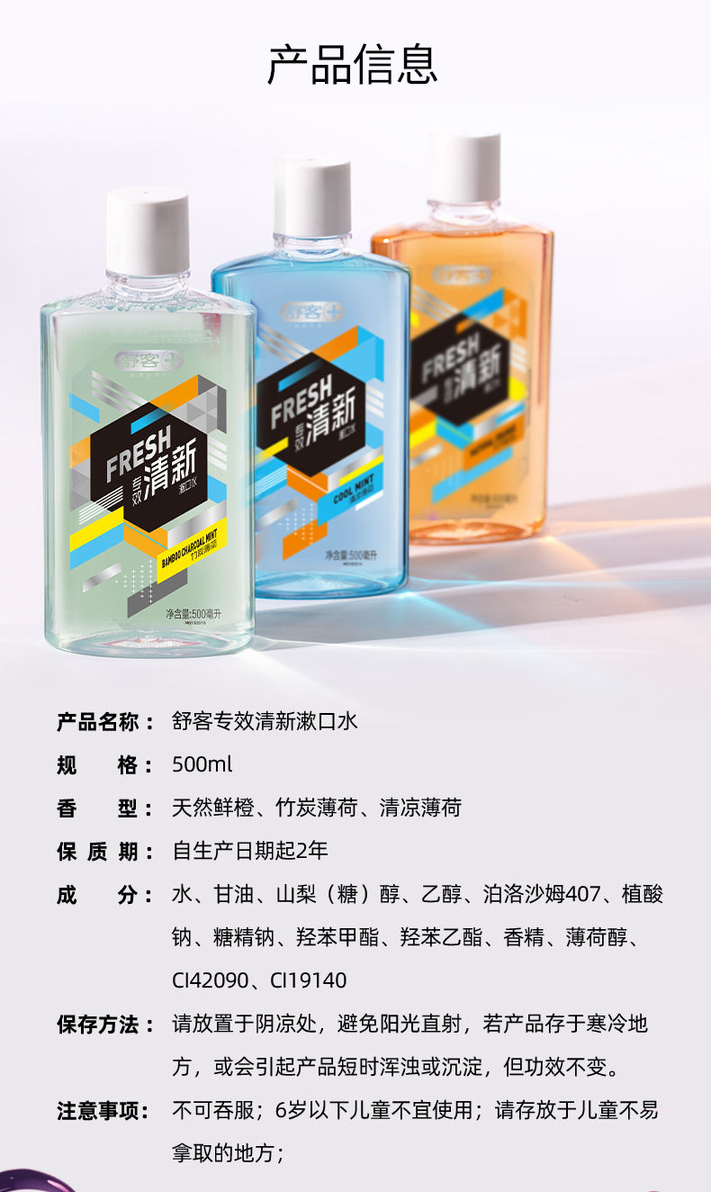【日化洗护】舒客专业清新漱口水清凉薄荷500ml*1QSH