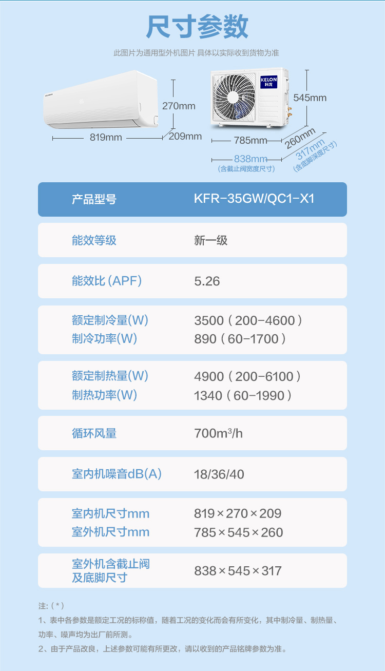 【国补15%】科龙空调 1.5匹空调 新一级能效KFR-35GW/QC1-X1