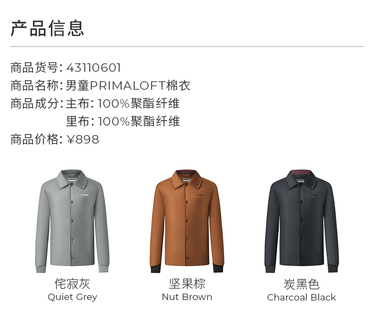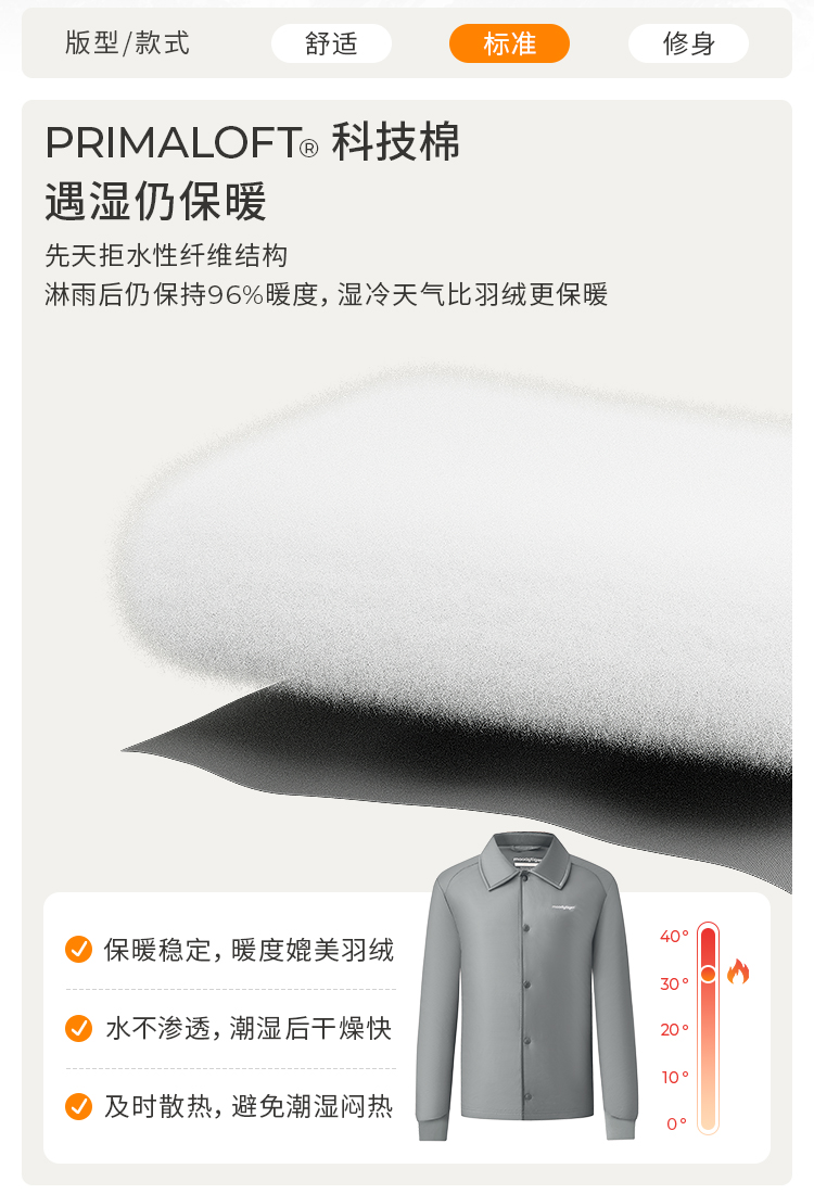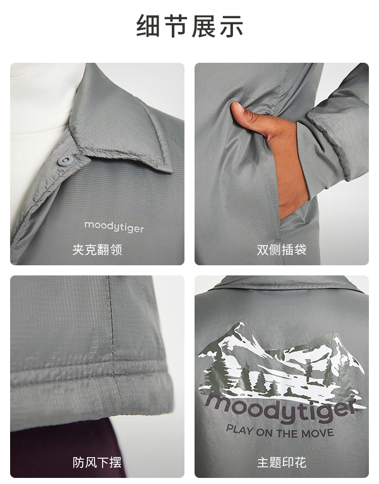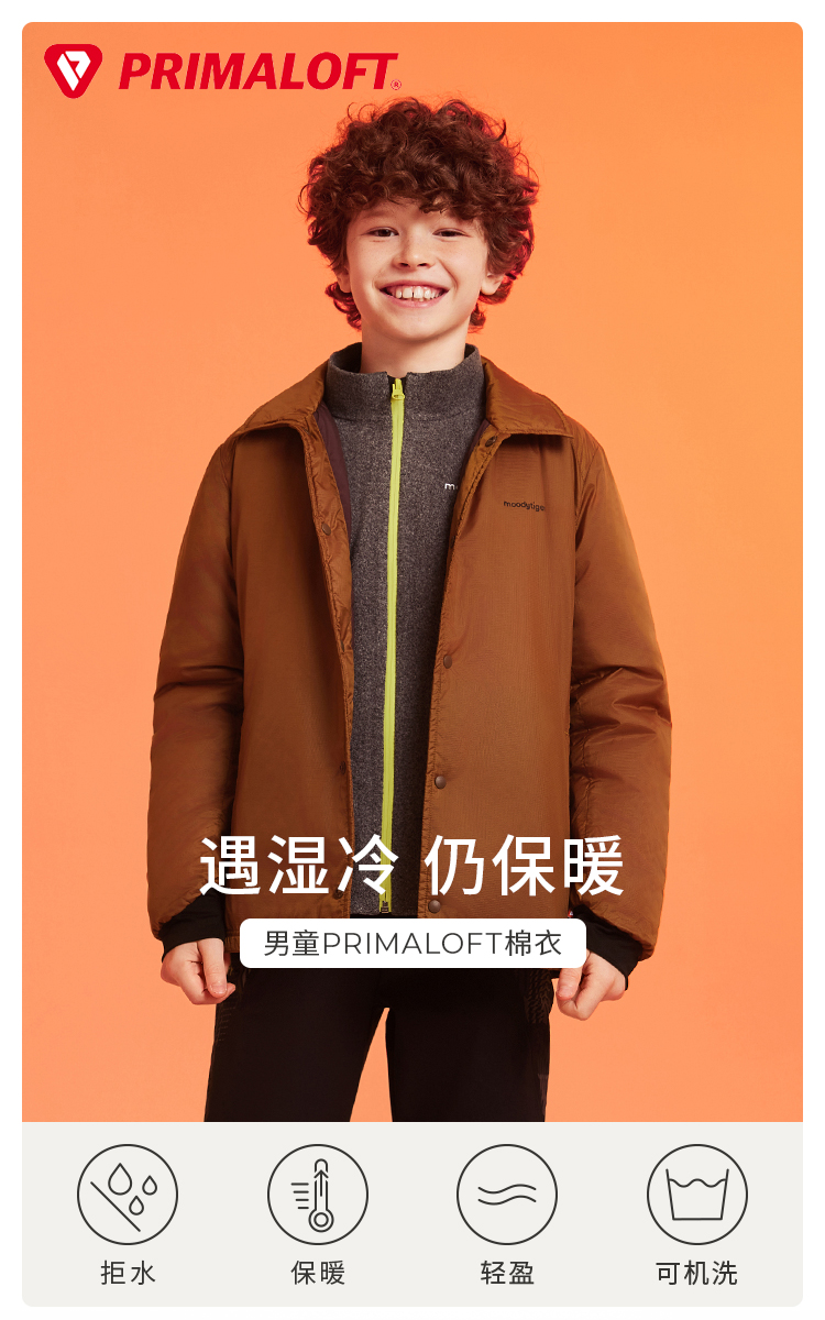 【24年秋新品】moodytiger男童棉服24秋冬新款拒水保暖PRIMALOFT科技棉外套43110601