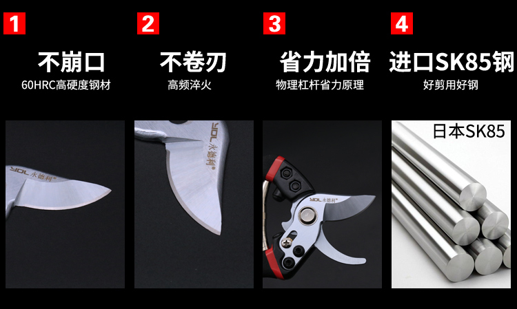 修枝剪树枝专用剪刀日本SK5钢强力果剪ydl园林园艺剪省力粗枝剪子