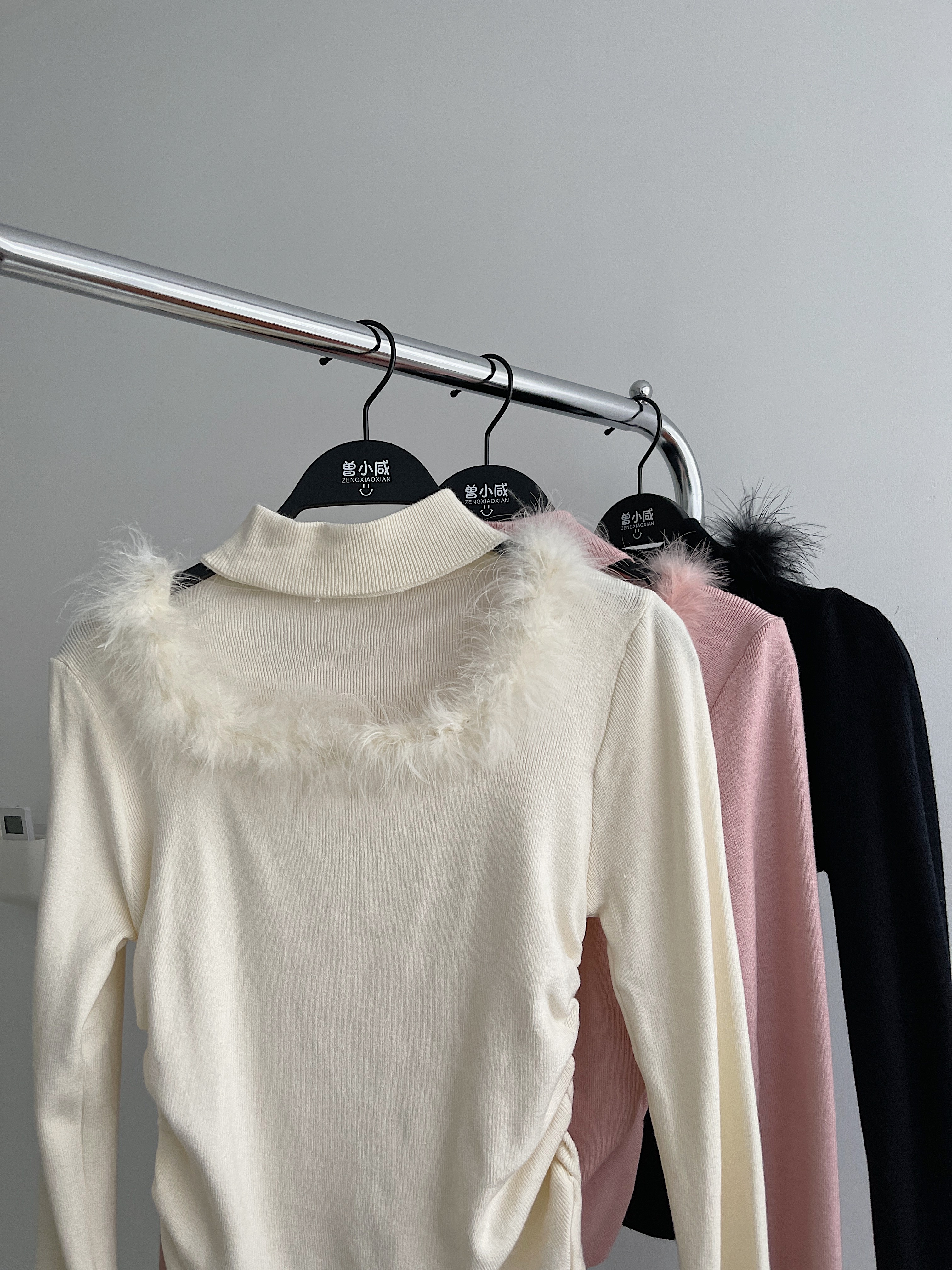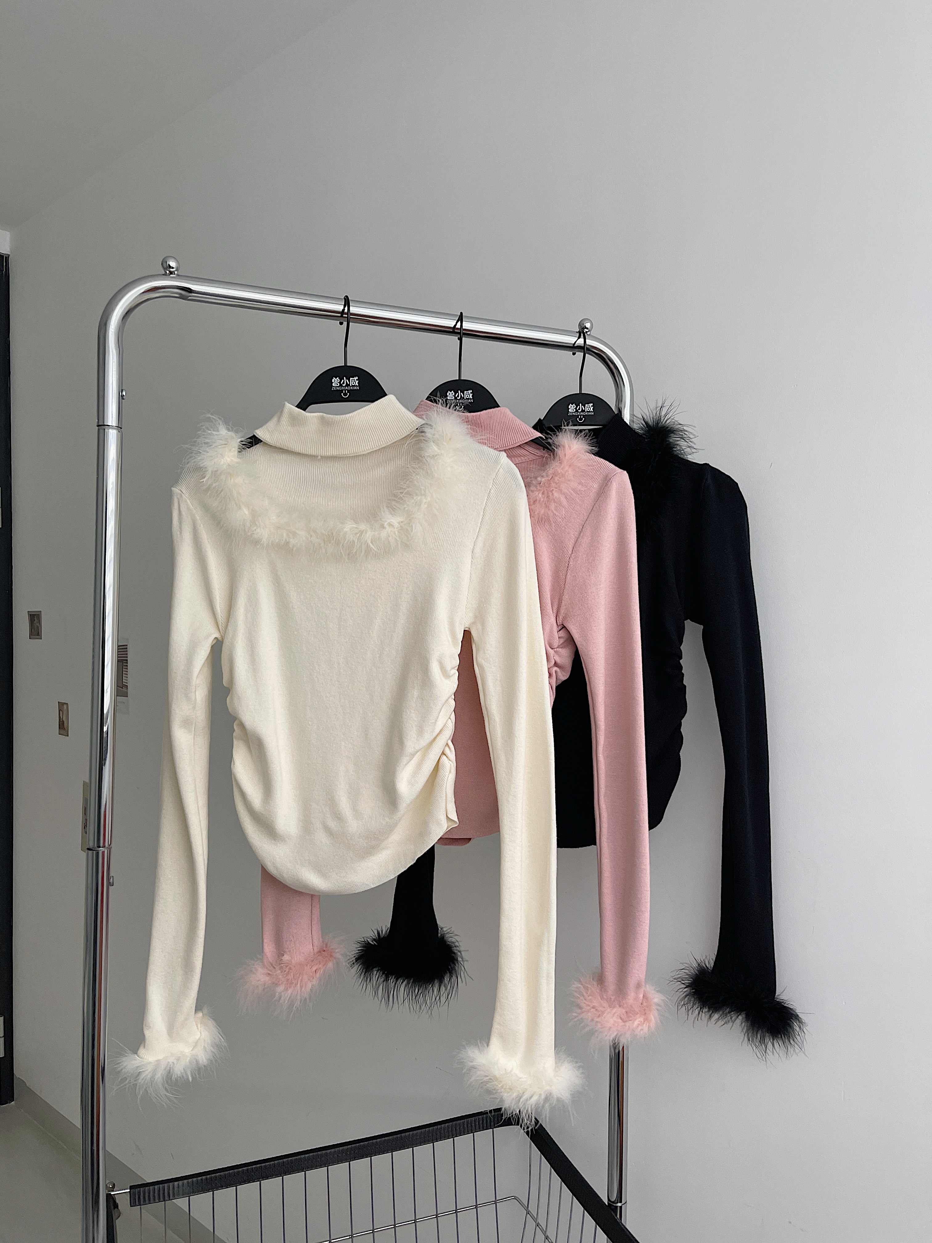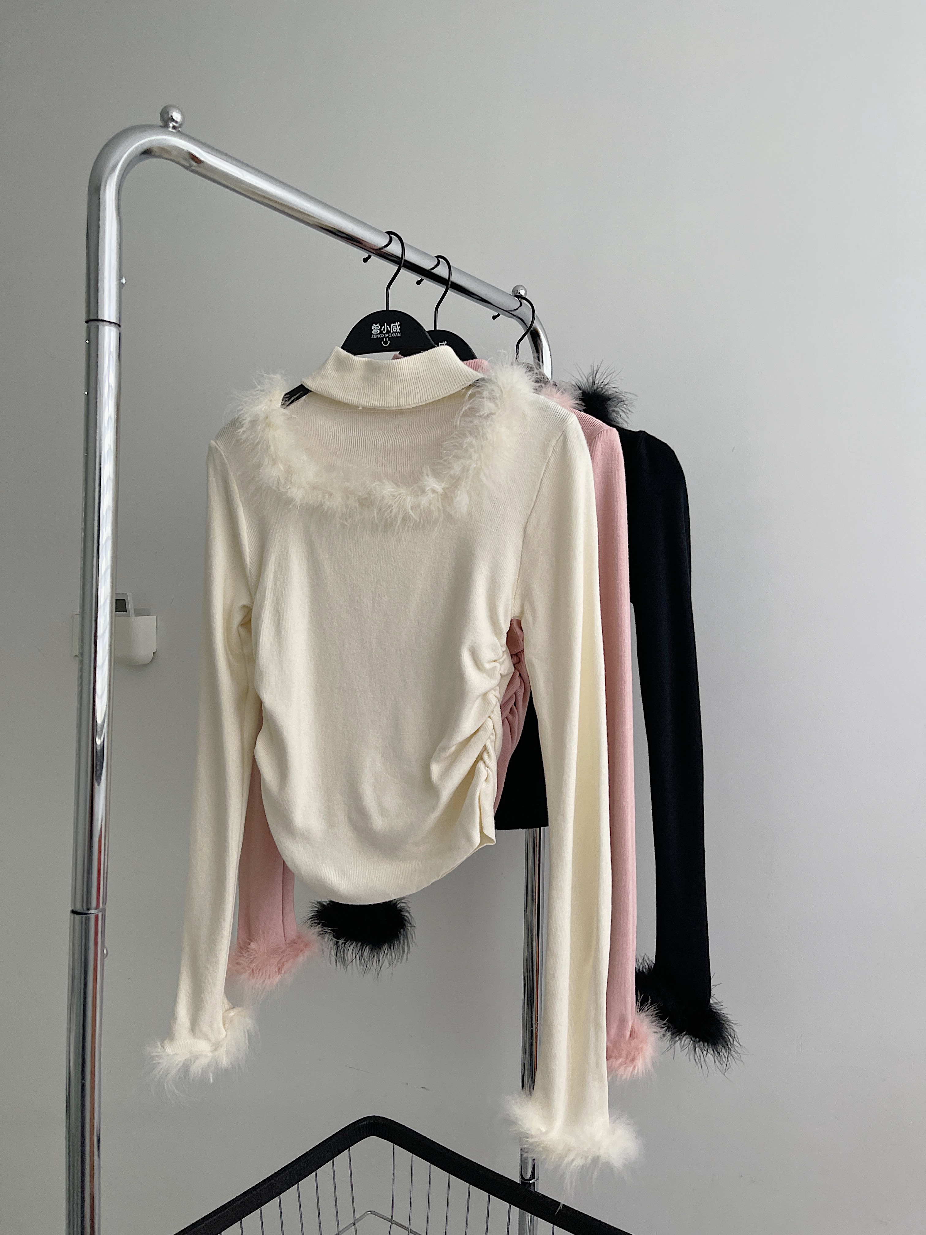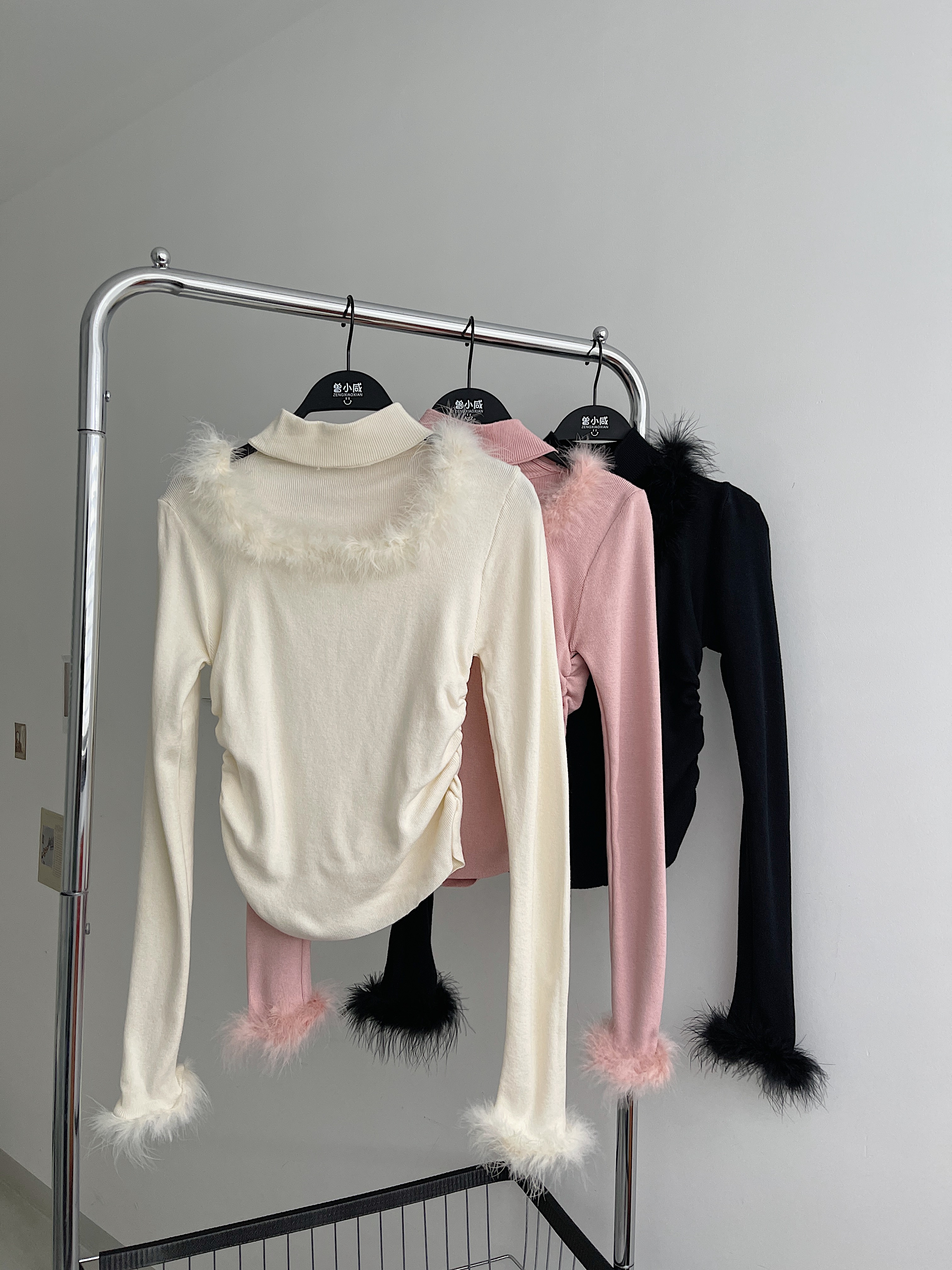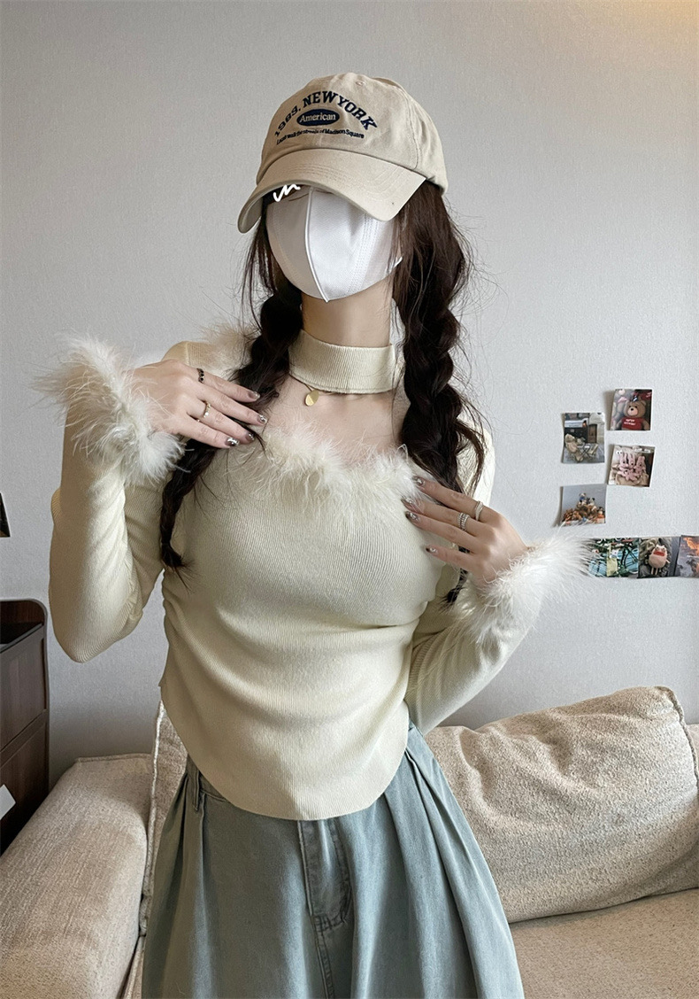 <曾小咸推荐>水貂毛拼接挂脖法式小衫