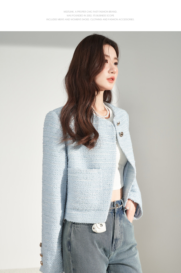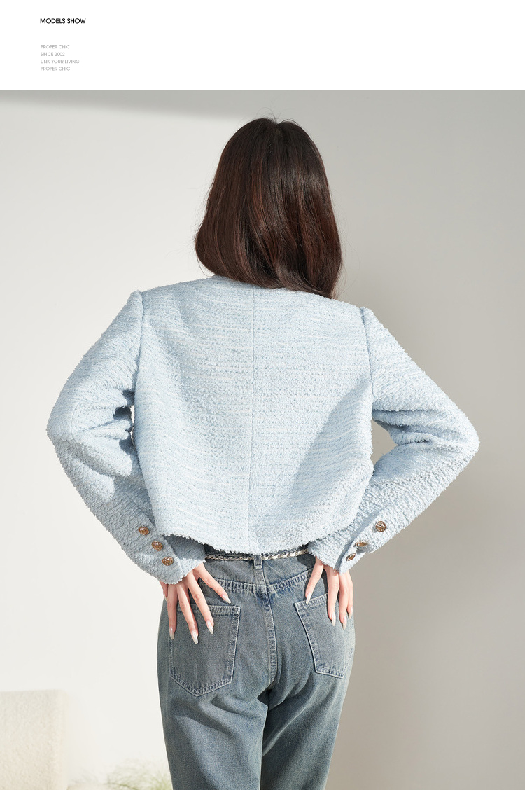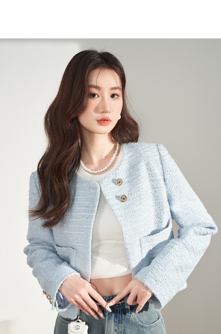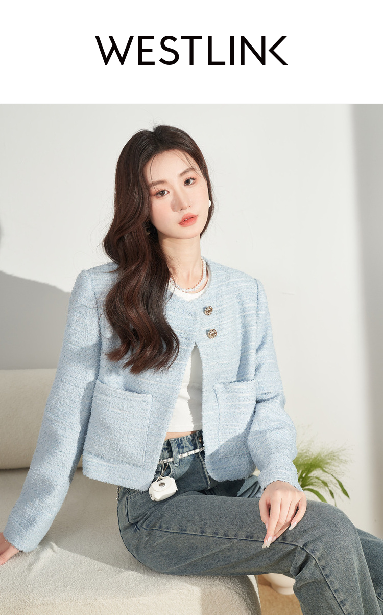 西遇法式浅蓝色小香风外套女新品经典复古开衫女上衣V0130015