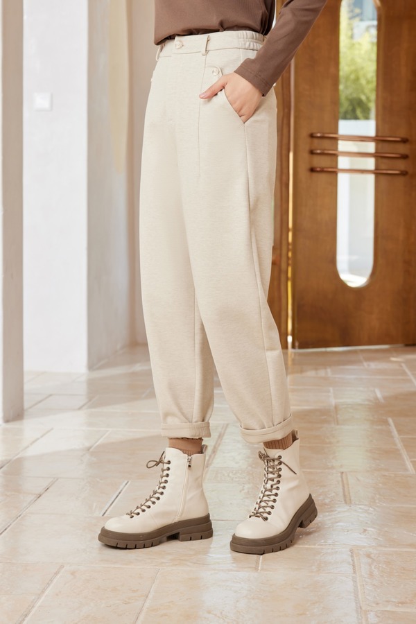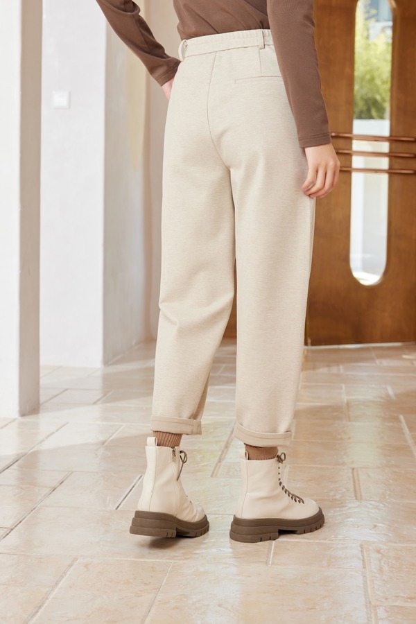 ESTELLICA 米色休闲高腰加绒长裤 19403