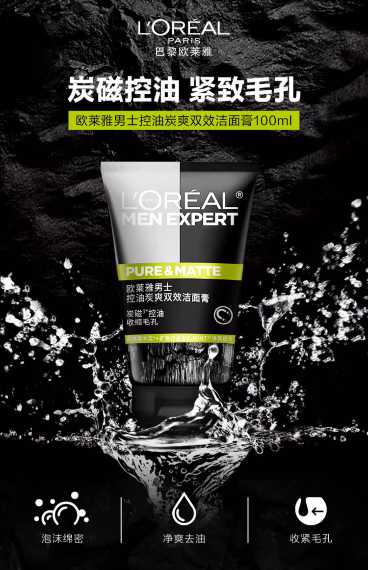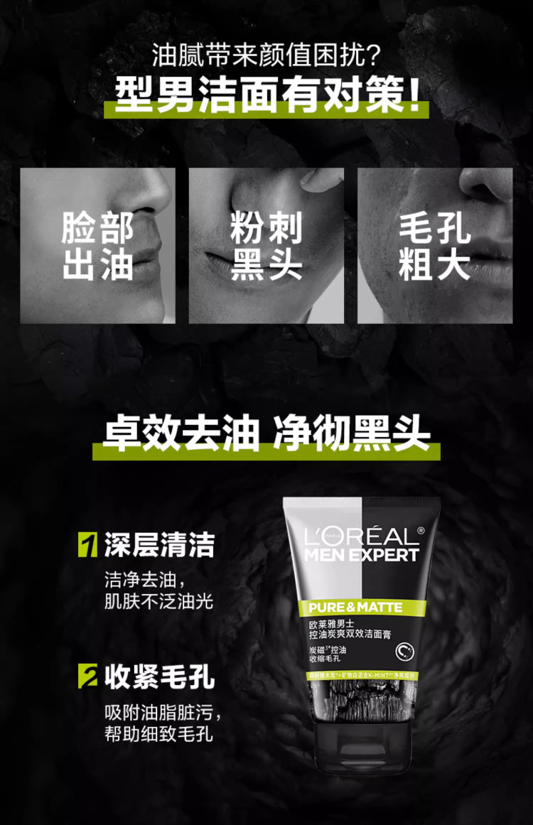 【自营】 欧莱雅 男士控油炭爽双效洁面膏 100ml