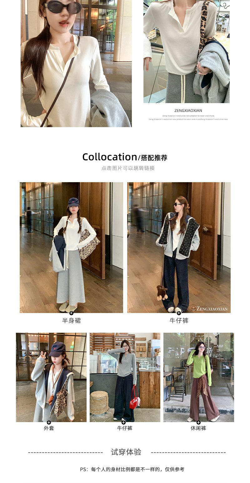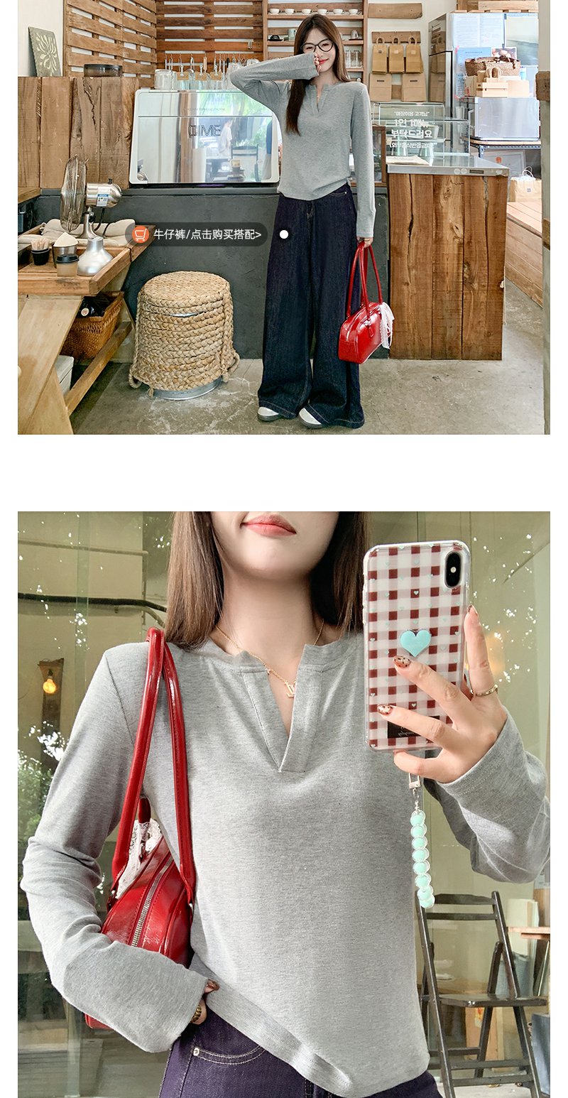 <曾小咸推荐>现货秒杀 !微信超特价!3色v领长袖T恤 日常109.99 立减50 秒杀59.99!!