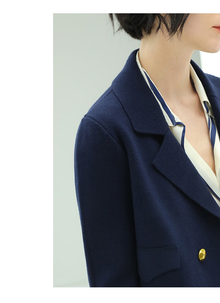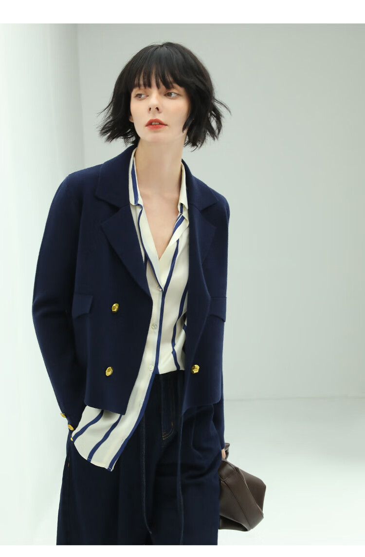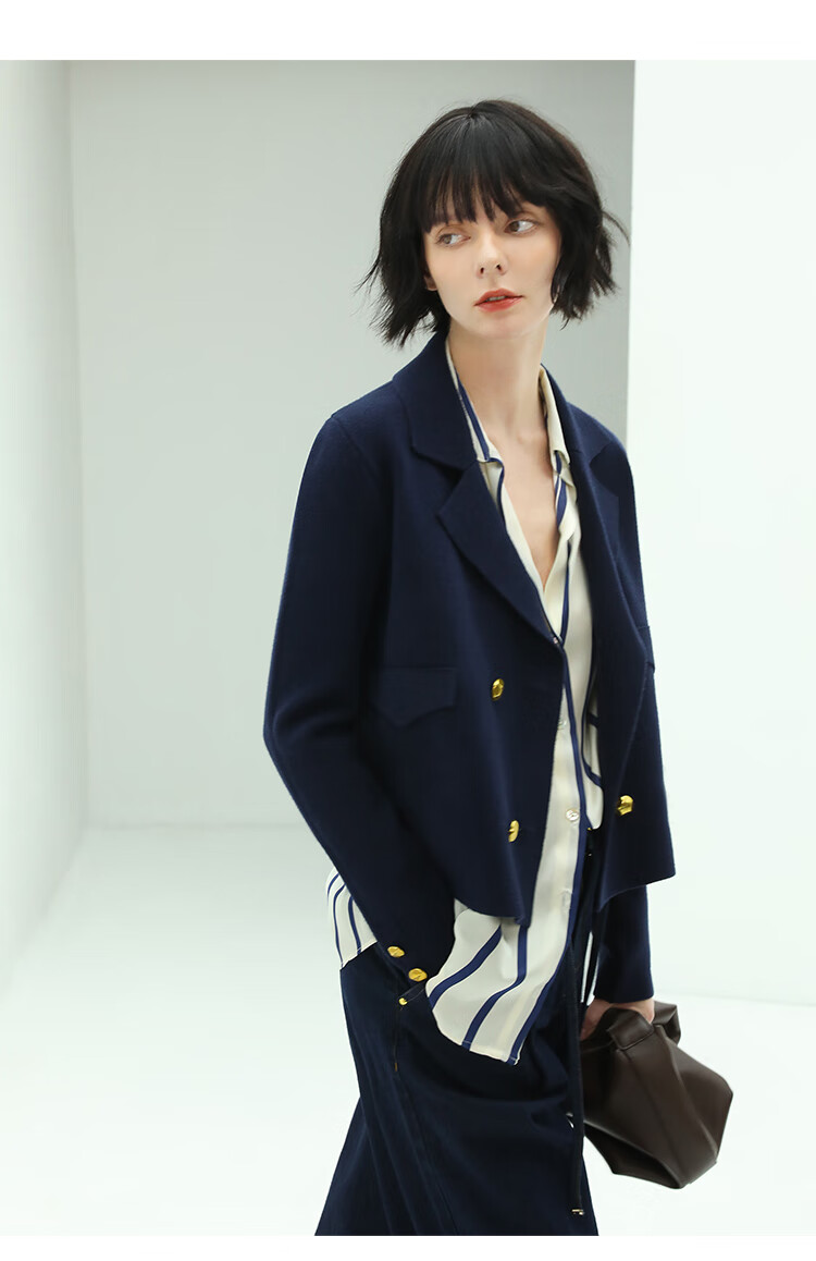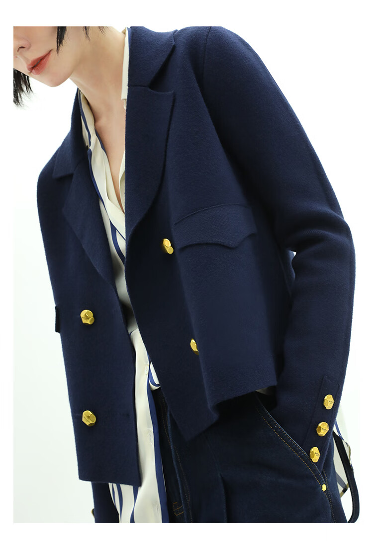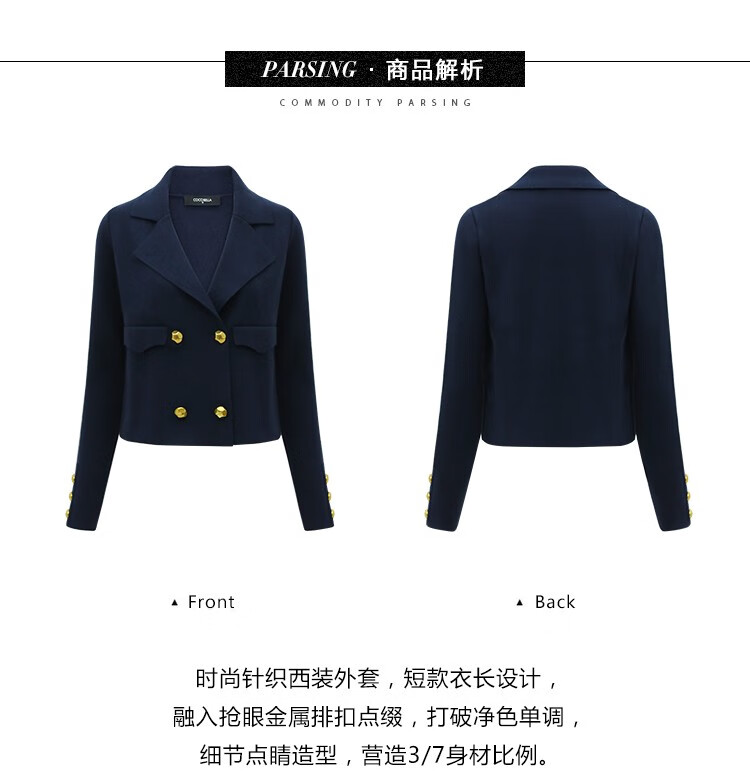COCOBELLA质感金属扣针织西装气质翻领短外套SC71