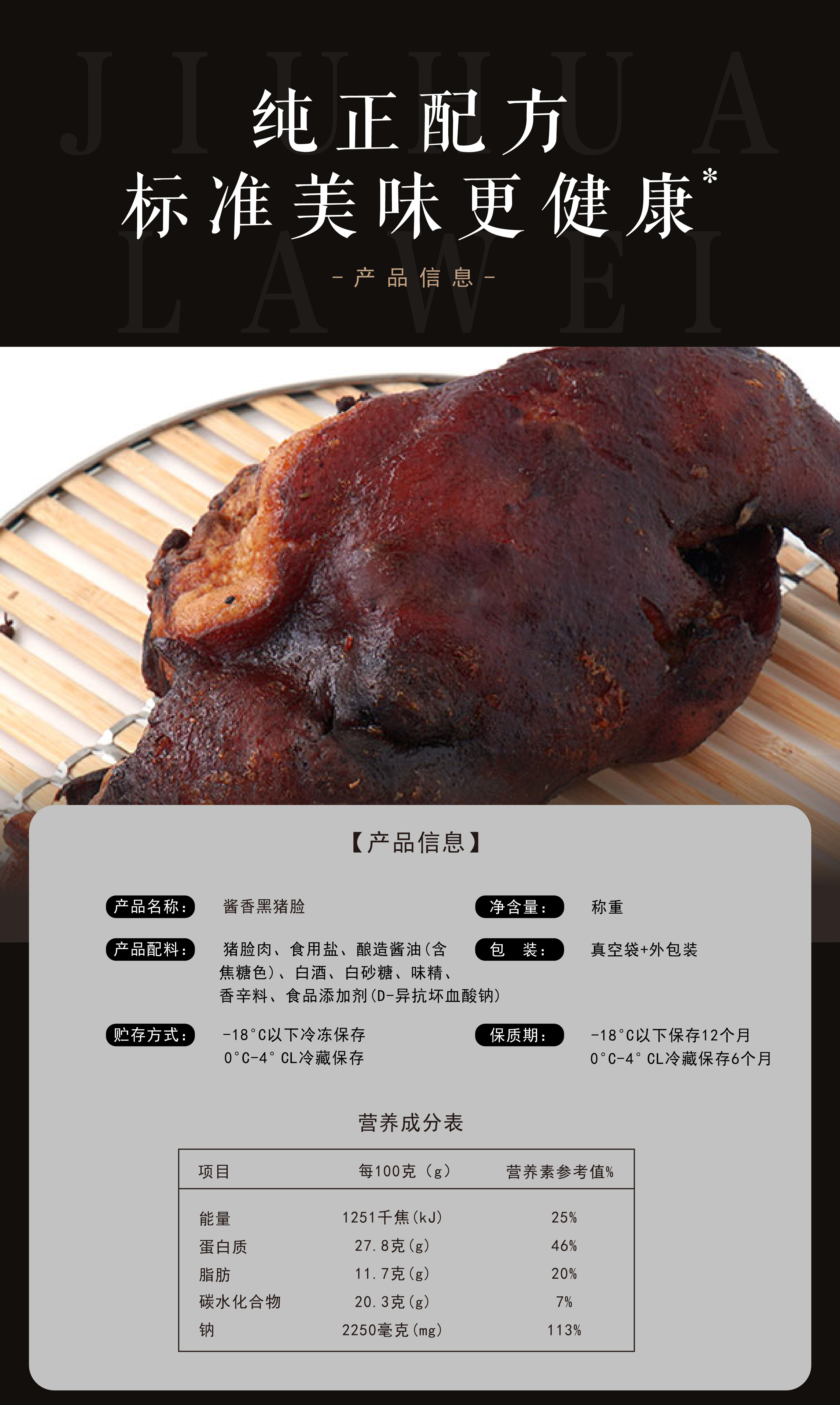 【产品名称】「金九芙」酱香猪脸肉 2袋*500g