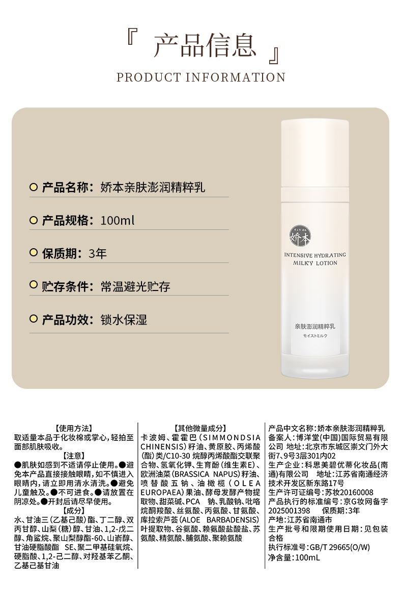 娇本 亲肤澎润精粹乳100ml
