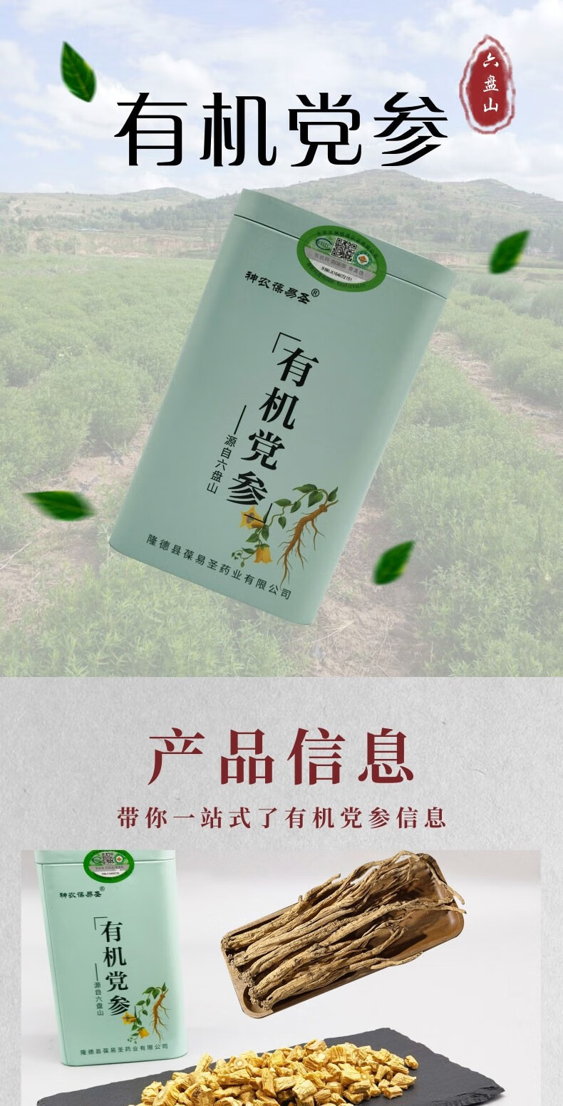 神农葆易圣 有机党参 230g盒装 无熏硫煲汤泡茶可搭配枸杞