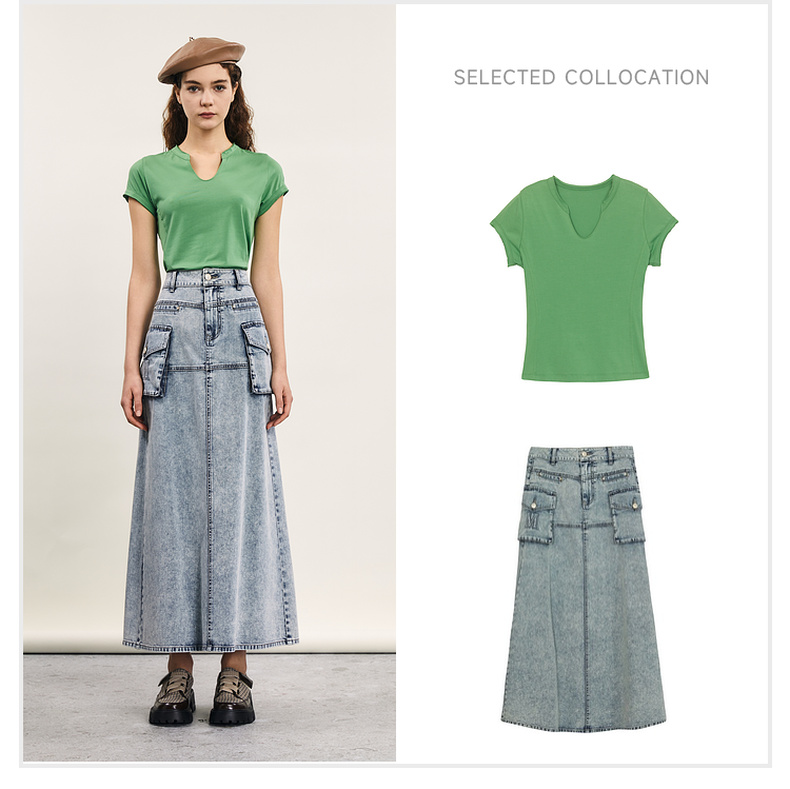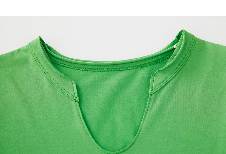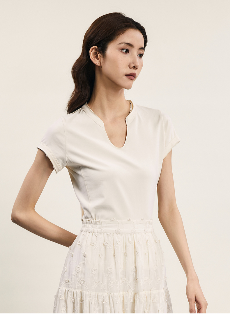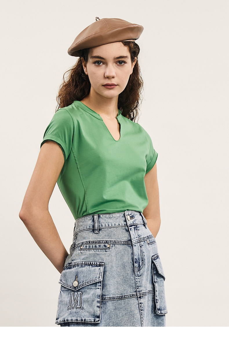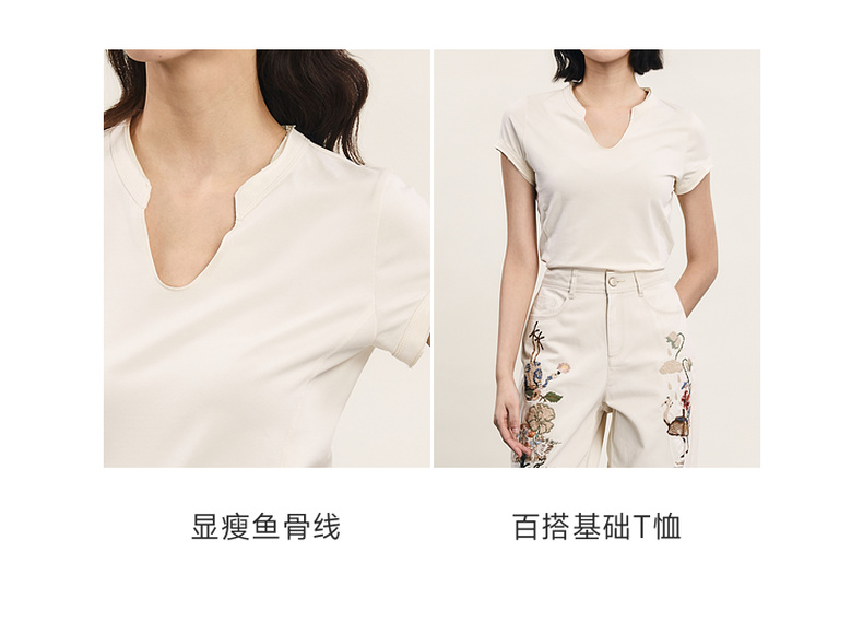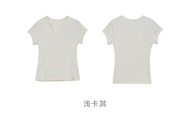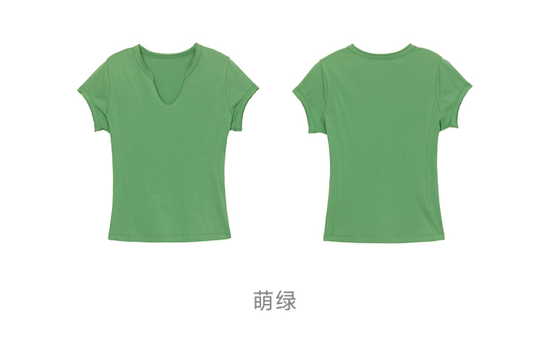 谜底V领T恤短袖女2024年夏季新品百搭纯色修身高弹上衣242MT0572