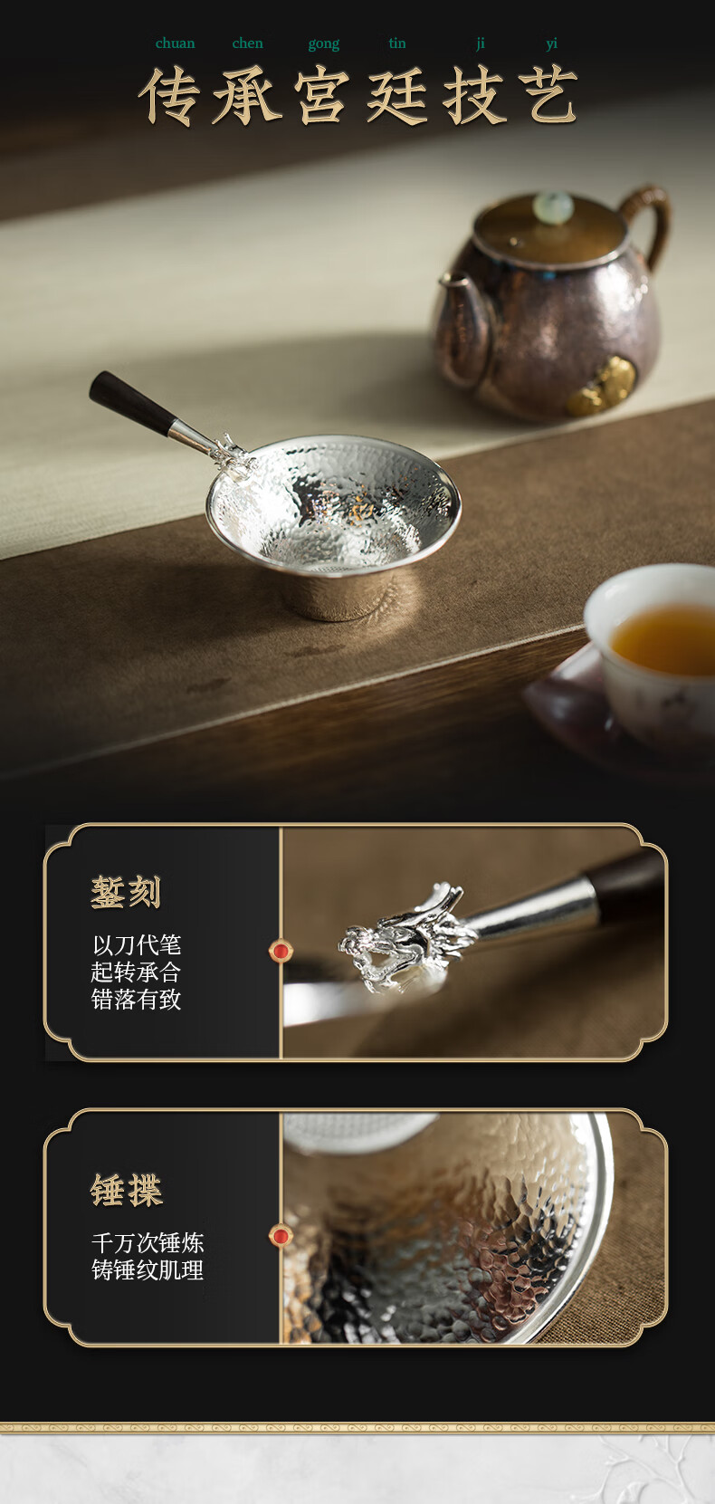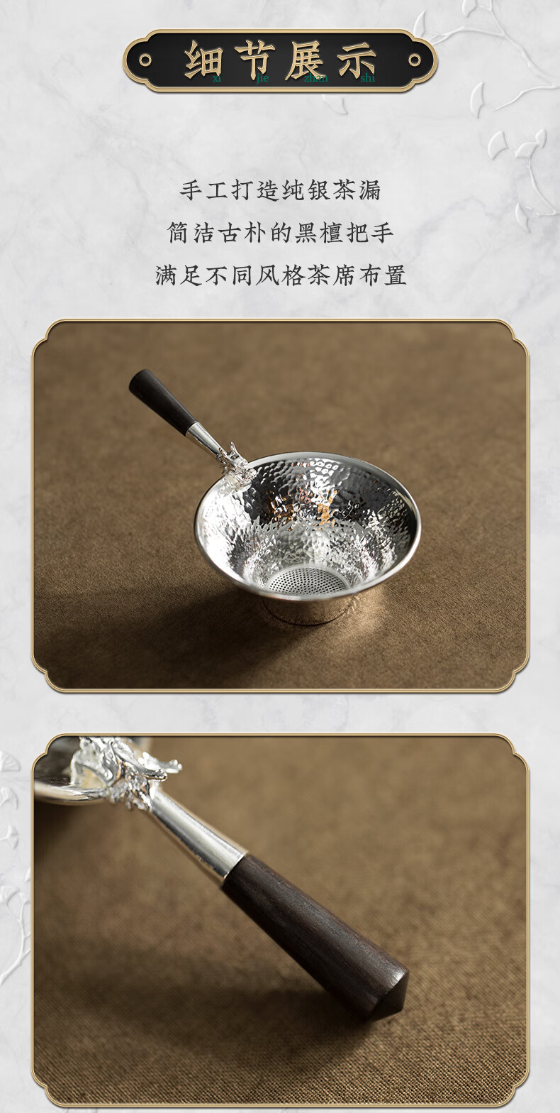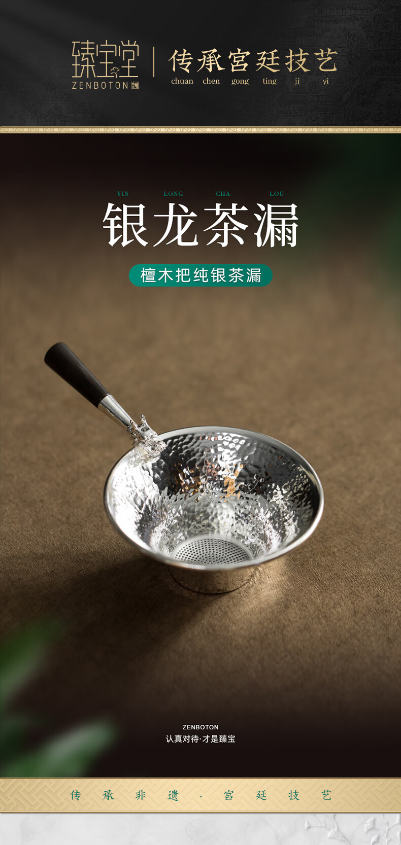 臻宝堂999纯银茶漏纯手工茶叶过滤网茶器银龙黑檀把柄茶滤功夫茶具配件 银龙茶漏(檀木把)