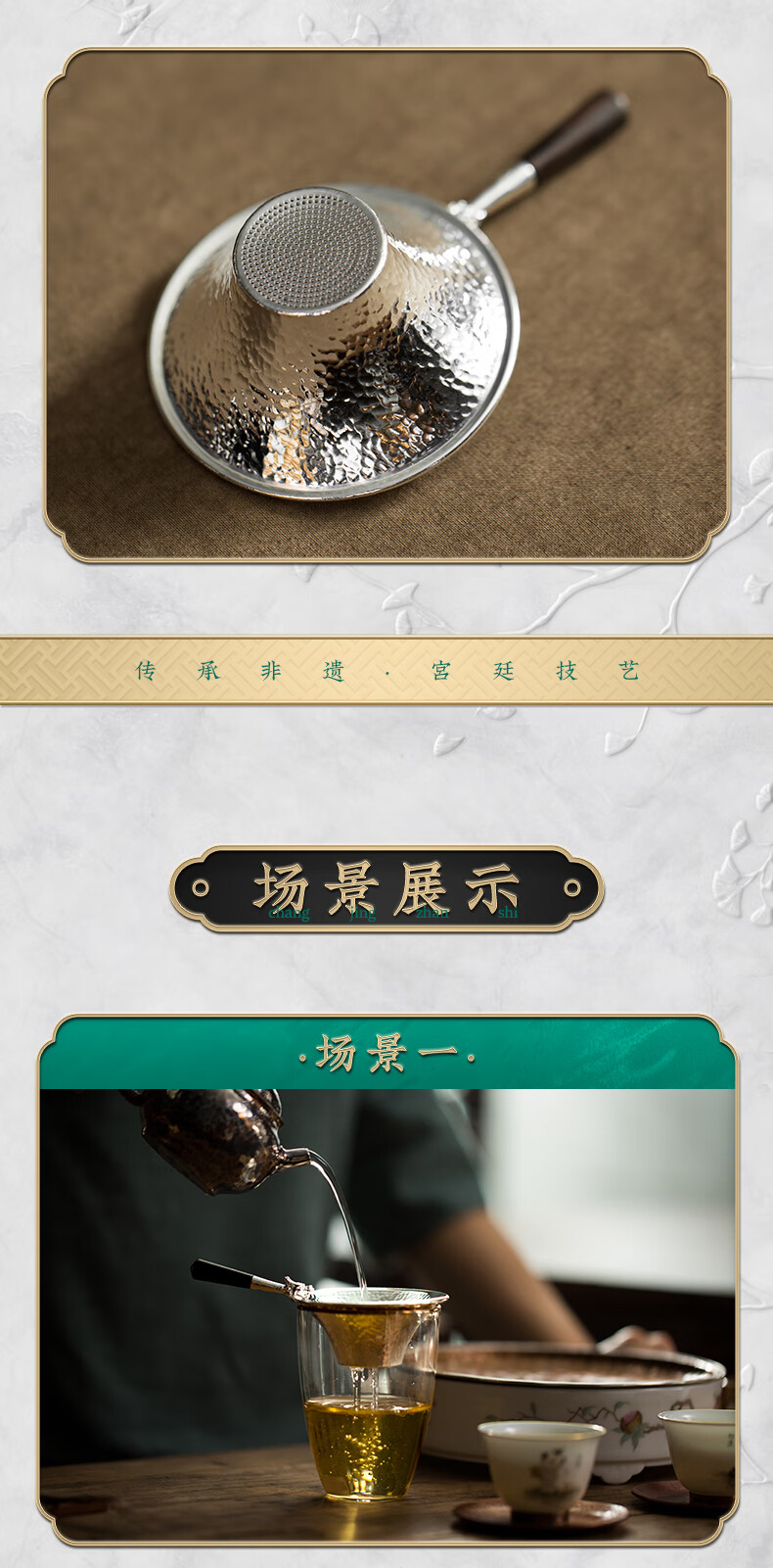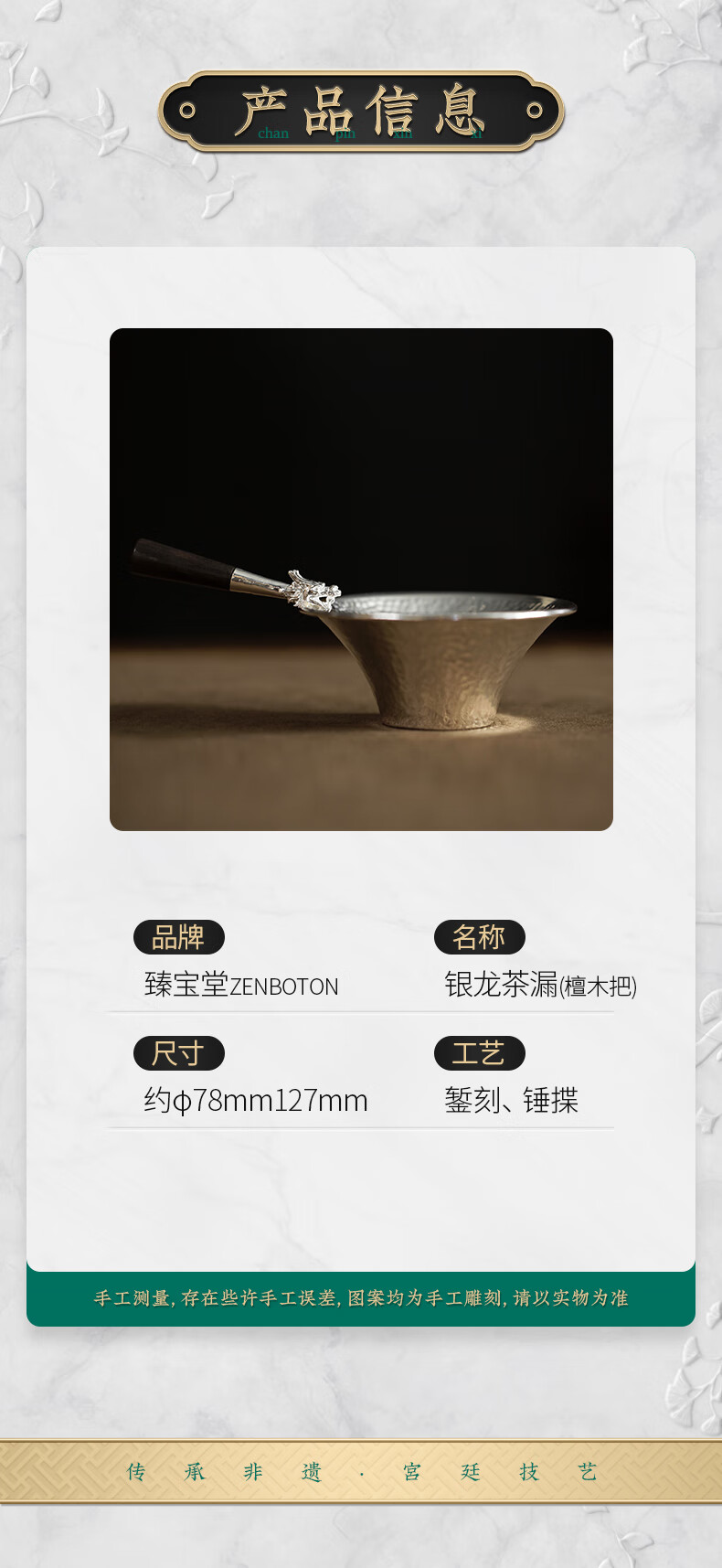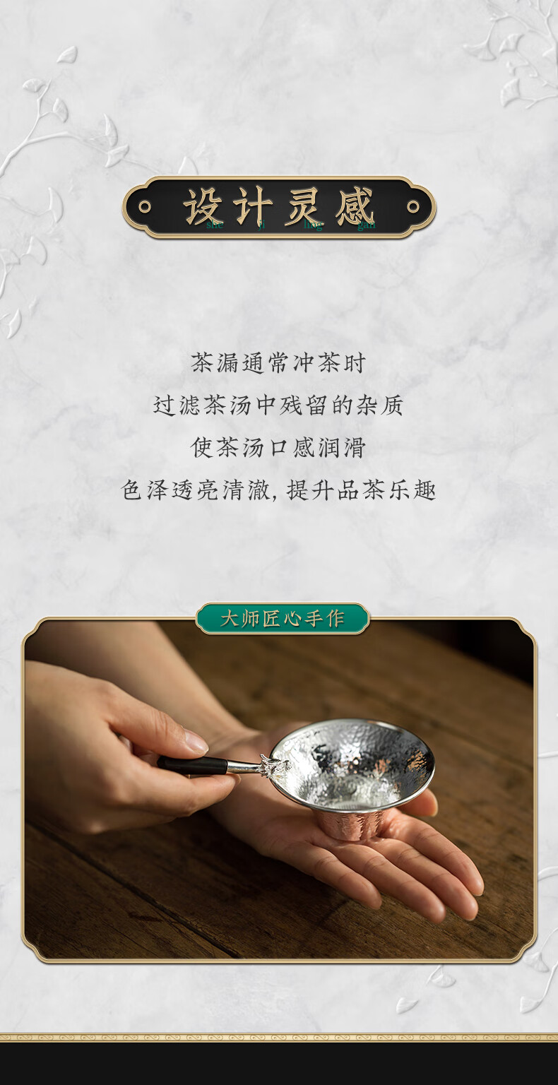 臻宝堂999纯银茶漏纯手工茶叶过滤网茶器银龙黑檀把柄茶滤功夫茶具配件 银龙茶漏(檀木把)