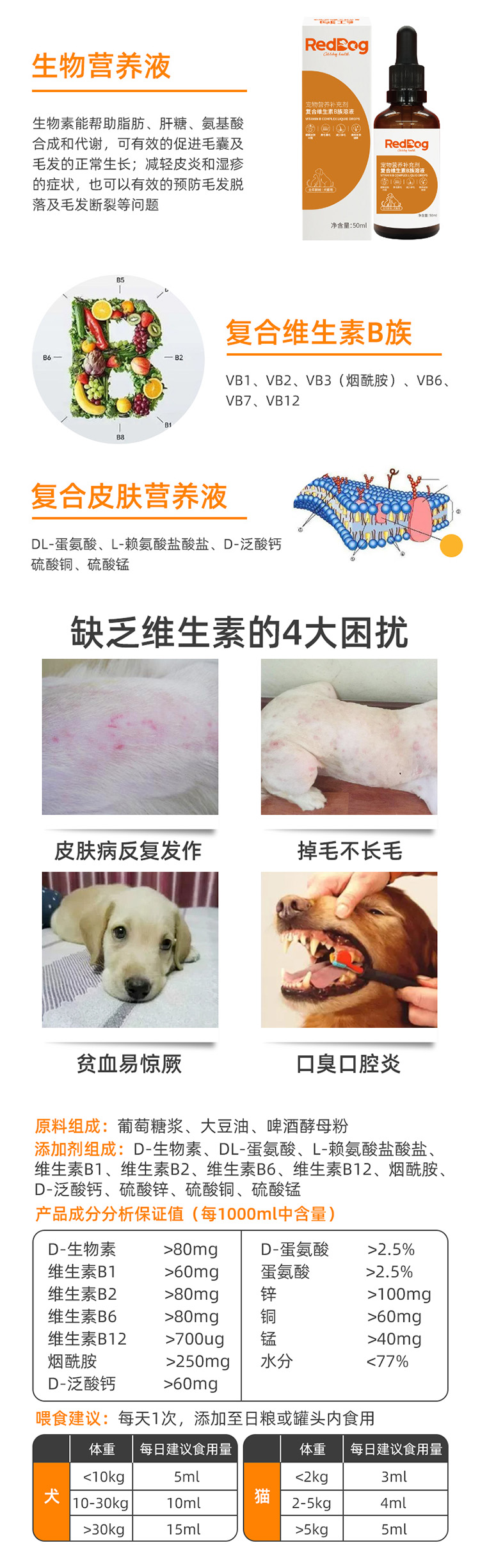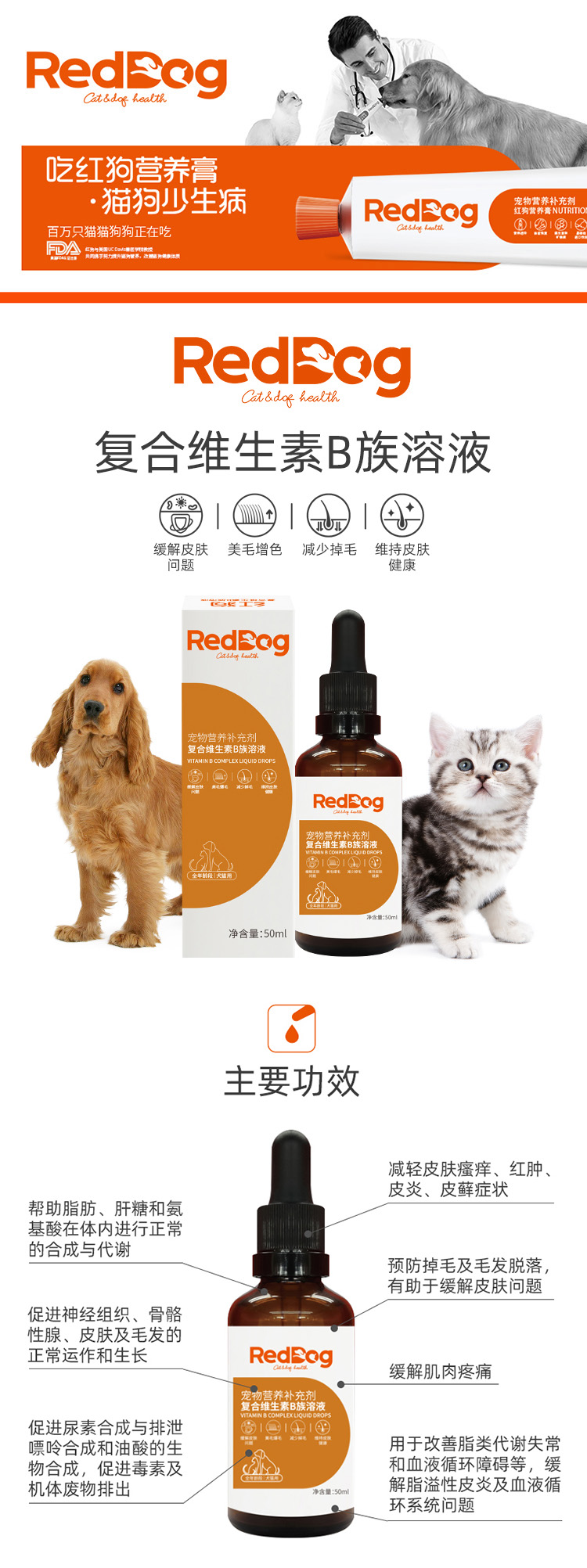 Reddog红狗复合维生素B族溶液50ml 猫狗防脱掉毛美毛缓解皮肤问题