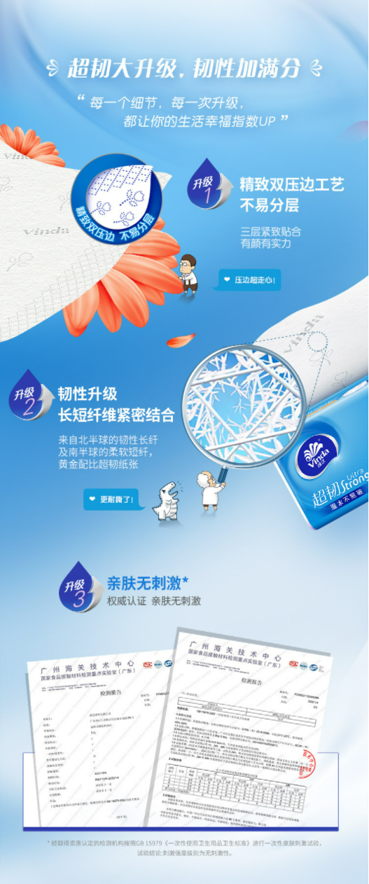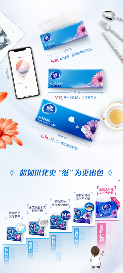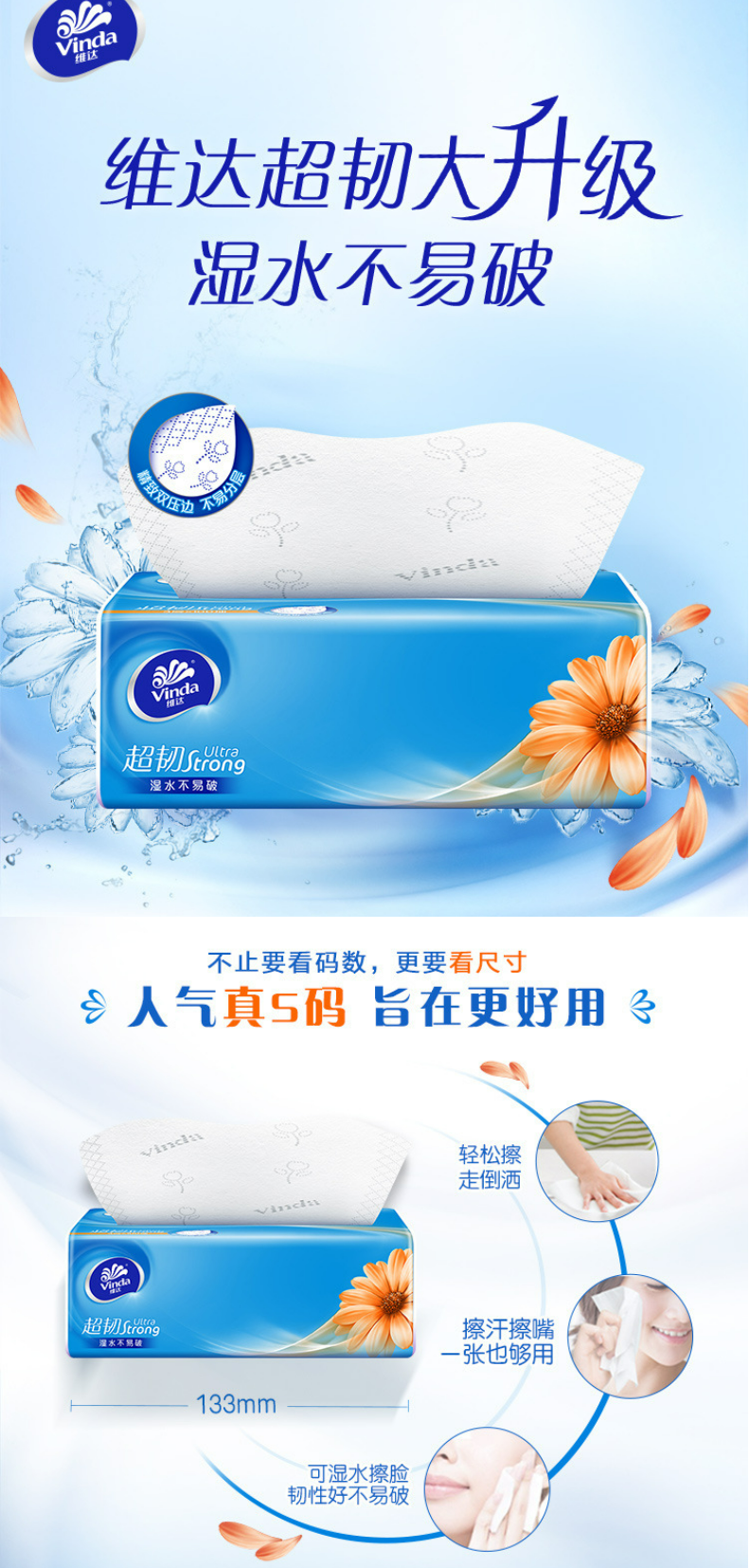 维达丨维达超韧纸面巾抽纸自然无香 S码3层100抽6包装
