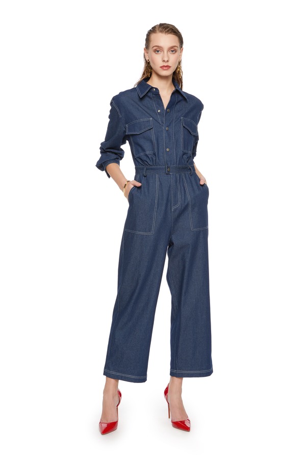 SUMMER & SAGE 蓝色牛仔工装连体裤 6252