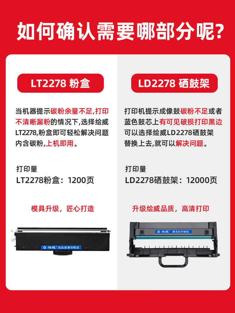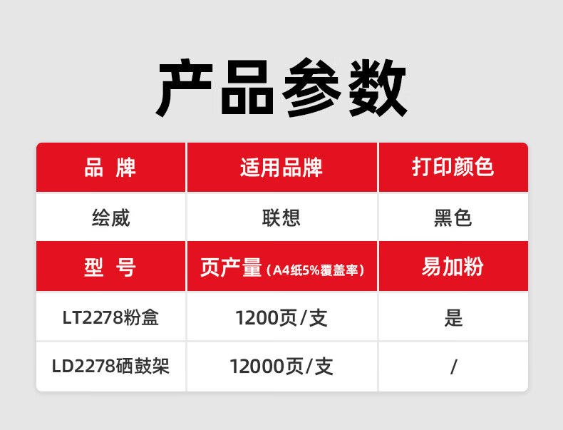 绘威 LT2278易加粉粉盒、LD2278硒鼓架、LT2278碳粉2支装 适用联想Lenovo小新熊猫Panda黑白激光智慧家用打印机M7228W M7298W硒鼓 墨粉盒