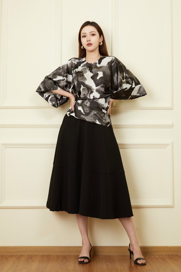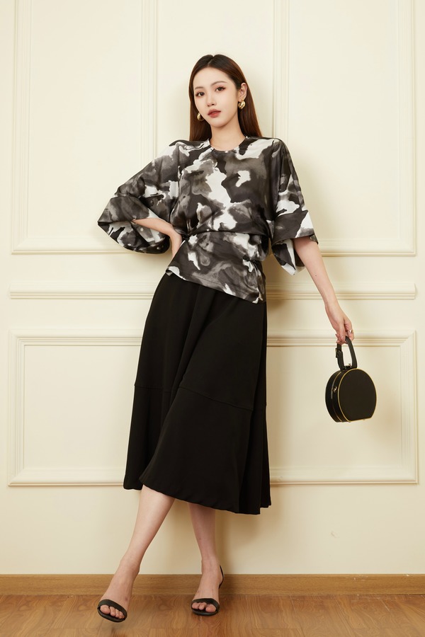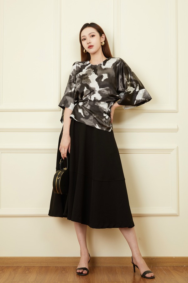 Le Malene 中国风水墨花艺术感上衣 18620