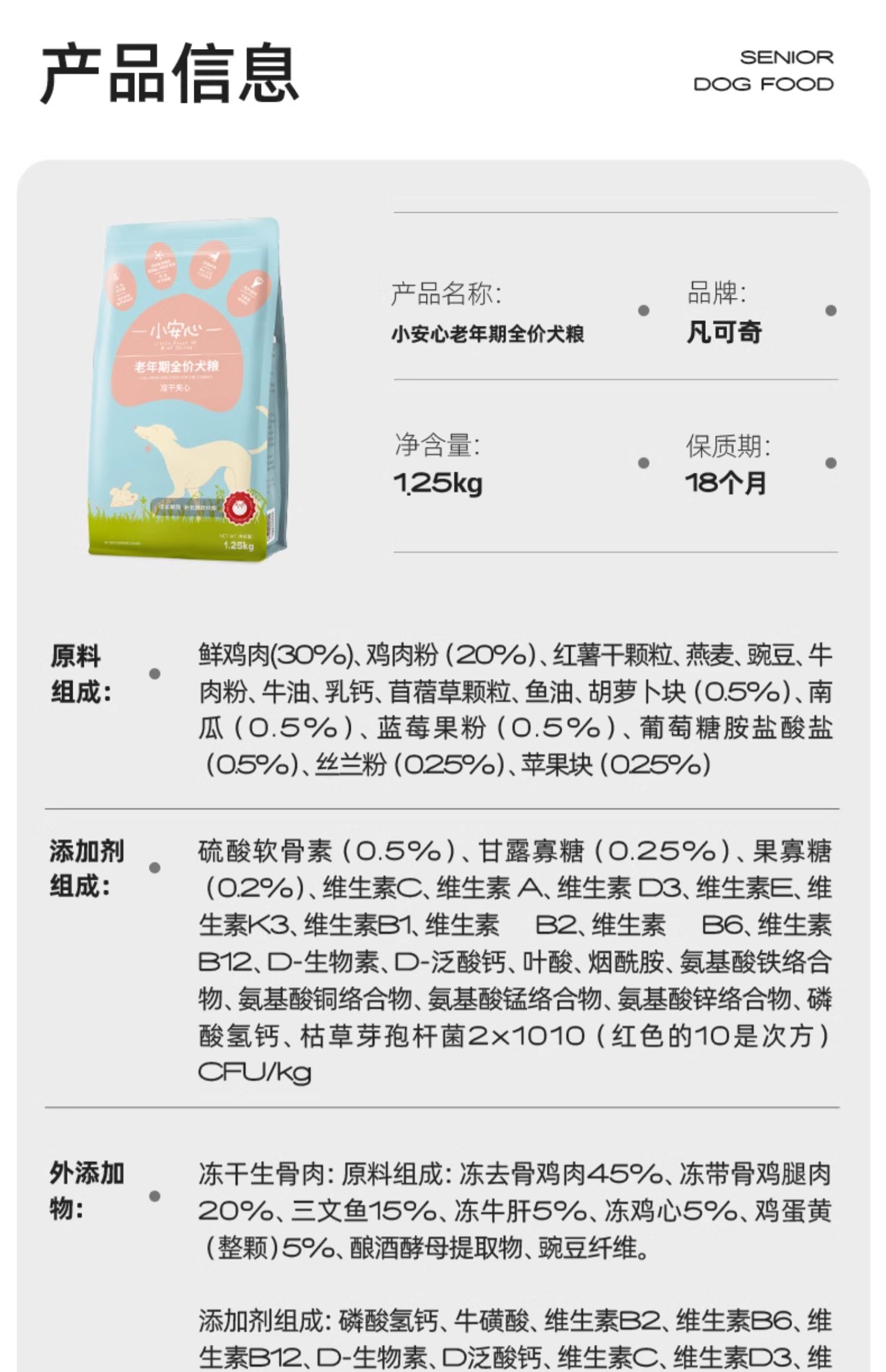 凡可奇 老年犬专用狗粮 2.5kg 大小型通用型狗粮