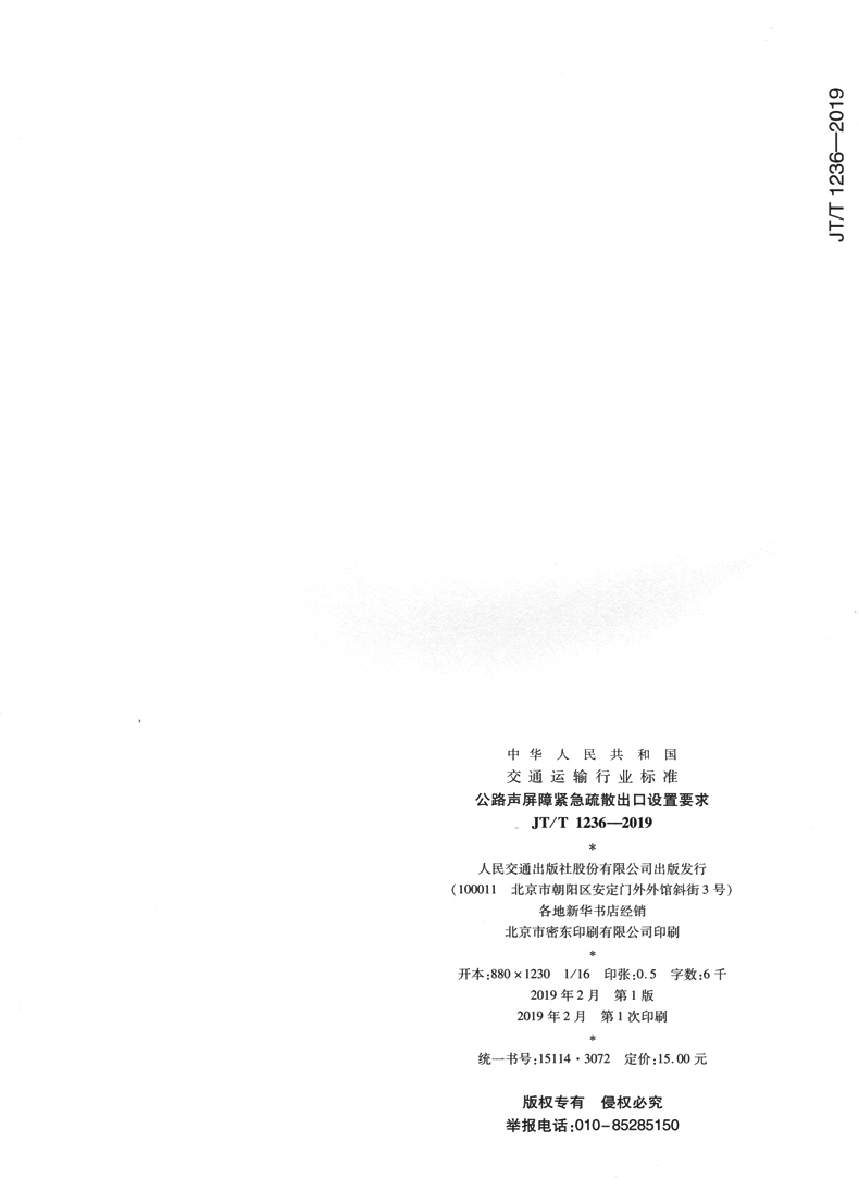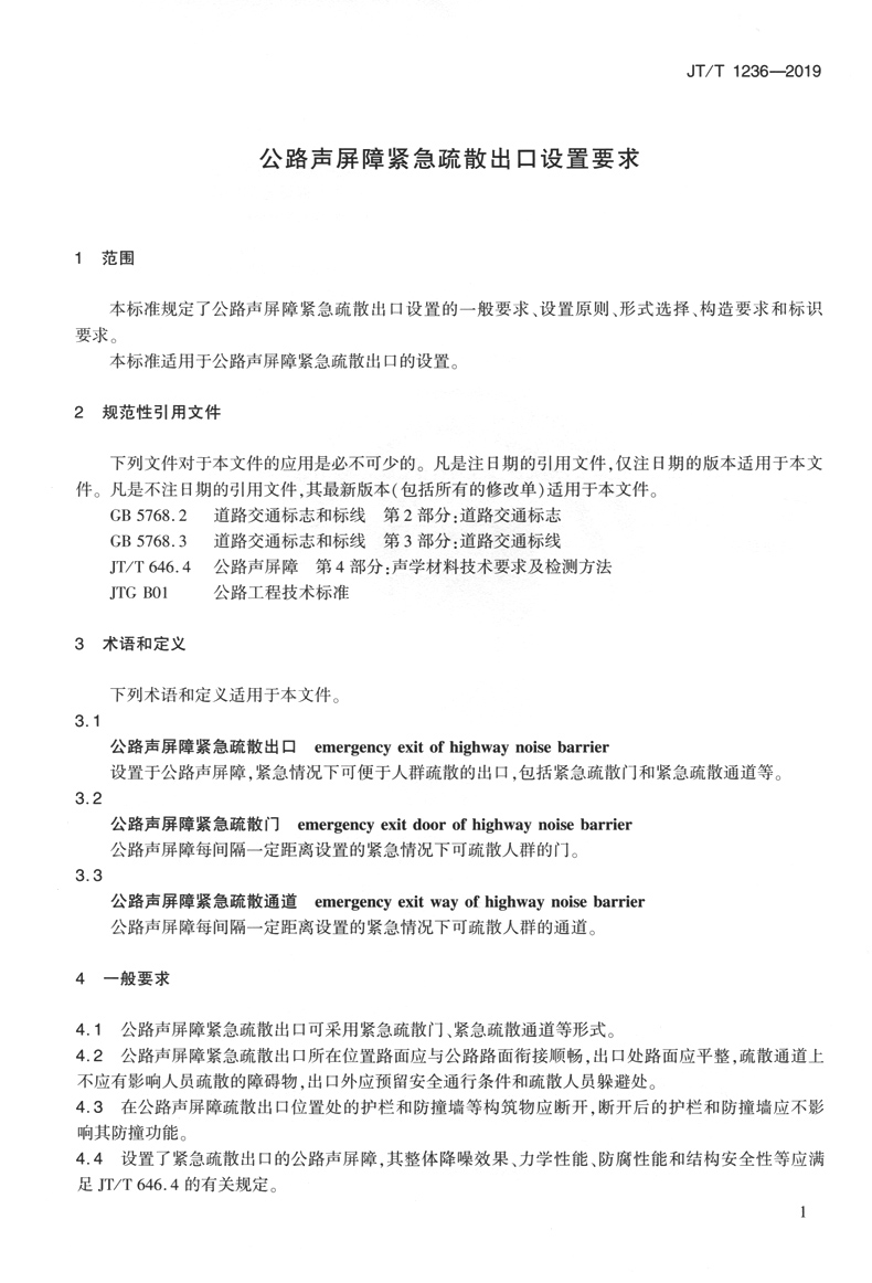 书名:公路声屏障紧急疏散出口设置要求(JT/T 1236—2019)