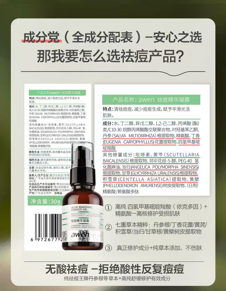【依斯卡爆品】awen阿汶祛痘精华凝露30g