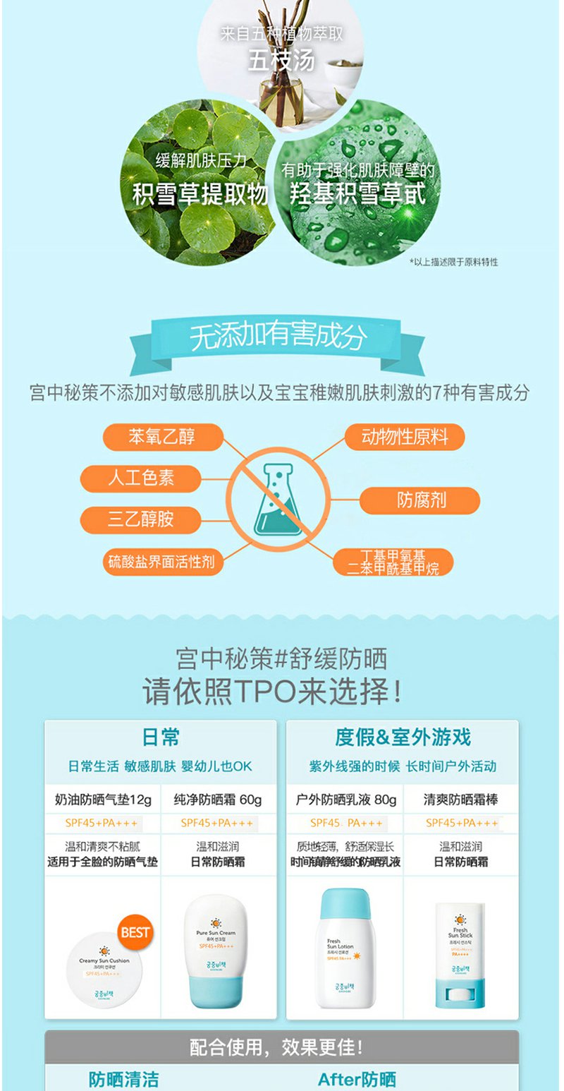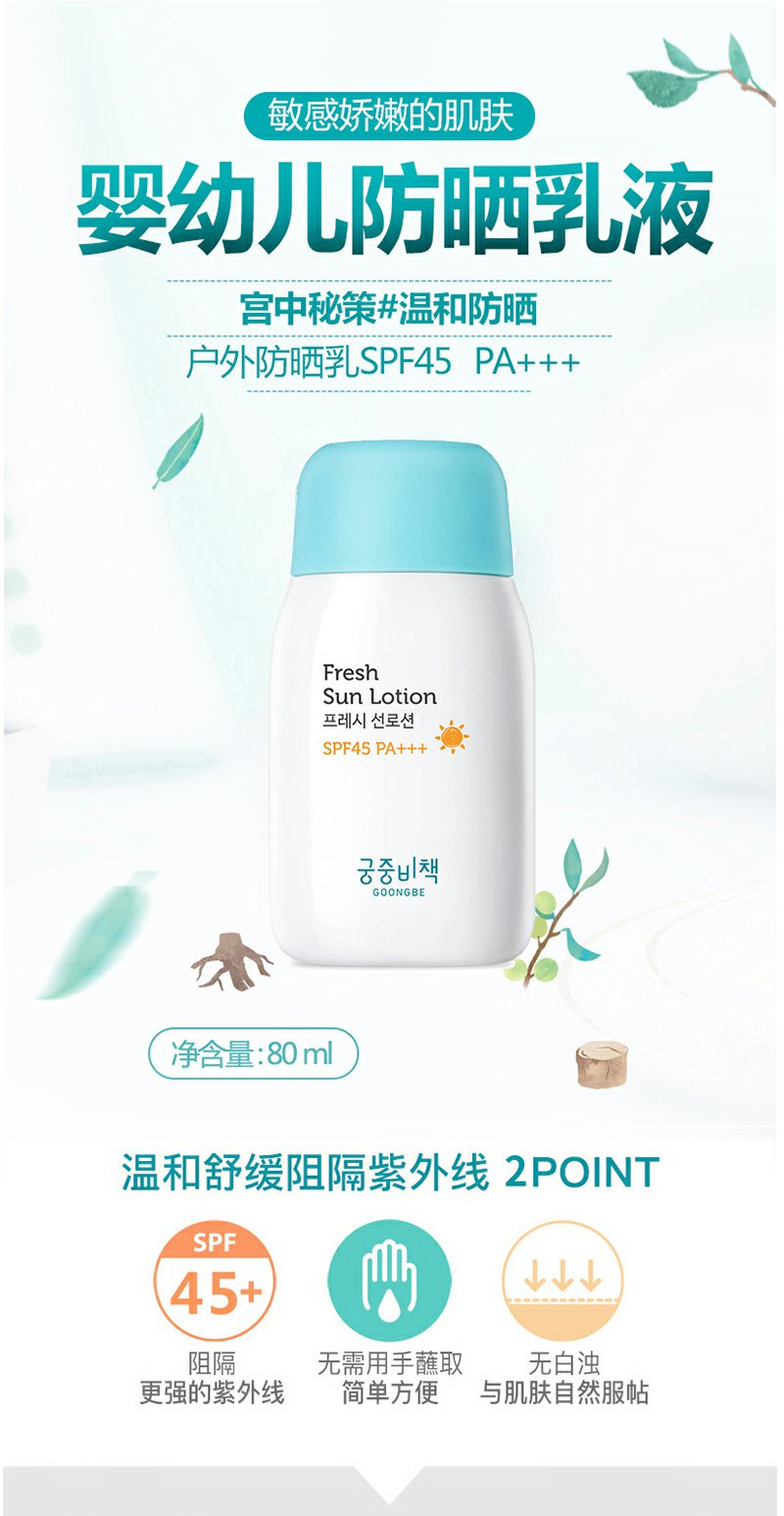 韩国宫中秘策防晒乳液80g婴幼儿童宝宝防晒霜清爽不油腻,50倍