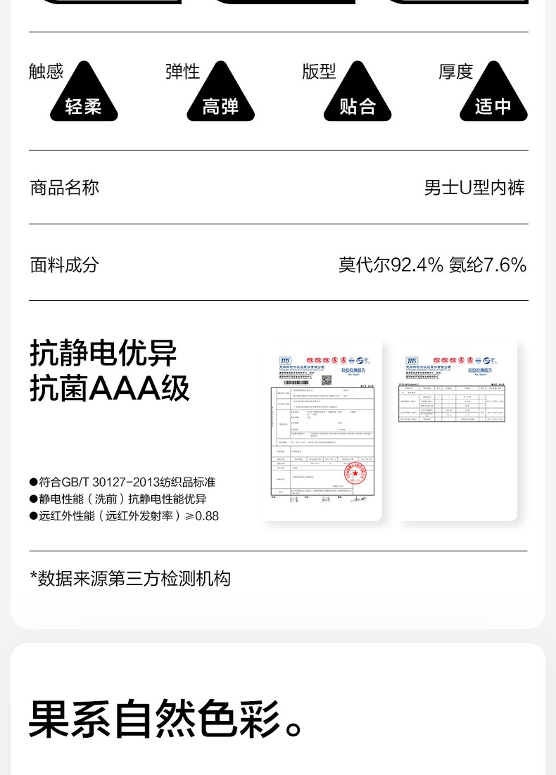 有棵树莫代尔无痕纯棉裆男士四角裤3条装C-S171
