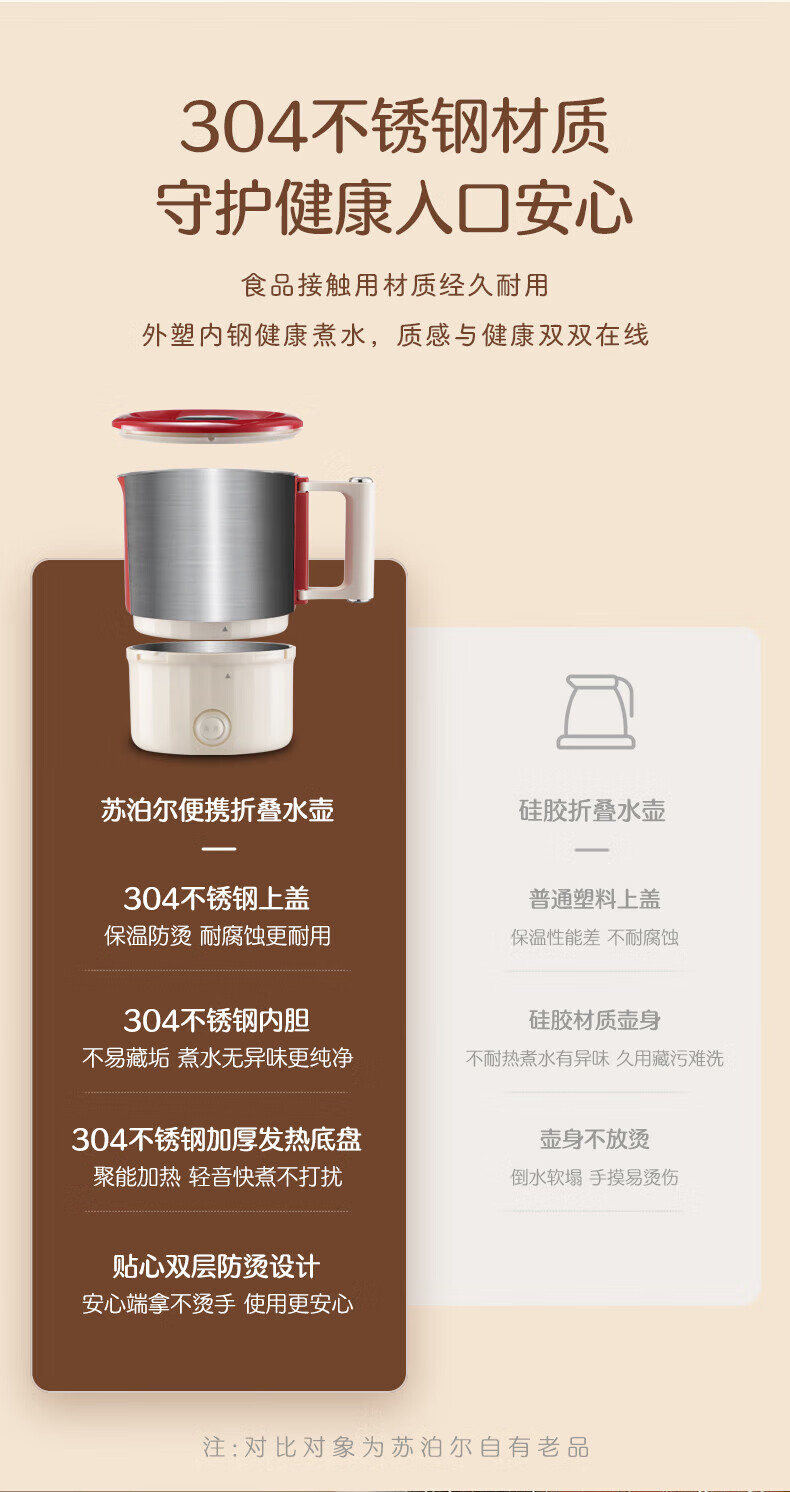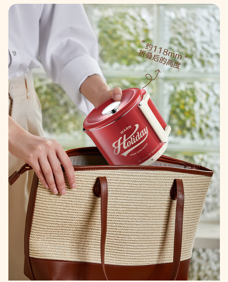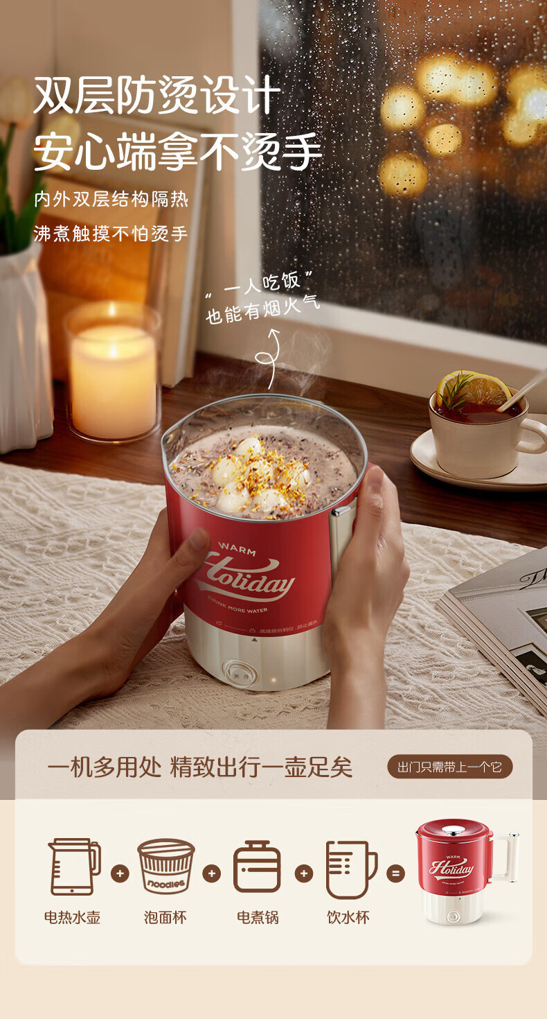苏泊尔(SUPOR)SW-08S02A多功能烧水壶双层防烫便携式可折叠水壶 泡面 中国红折叠壶